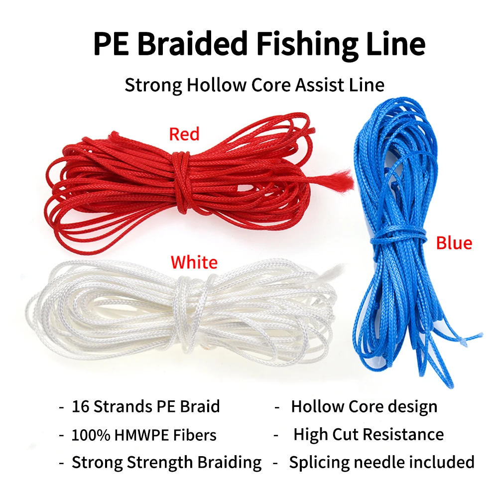 Elllv, 5M, 16 hebras, línea trenzada de PE, cuerda de asistencia de núcleo hueco fuerte para atar anzuelo de Jigging, pesca con lanza de agua salada/buceo
