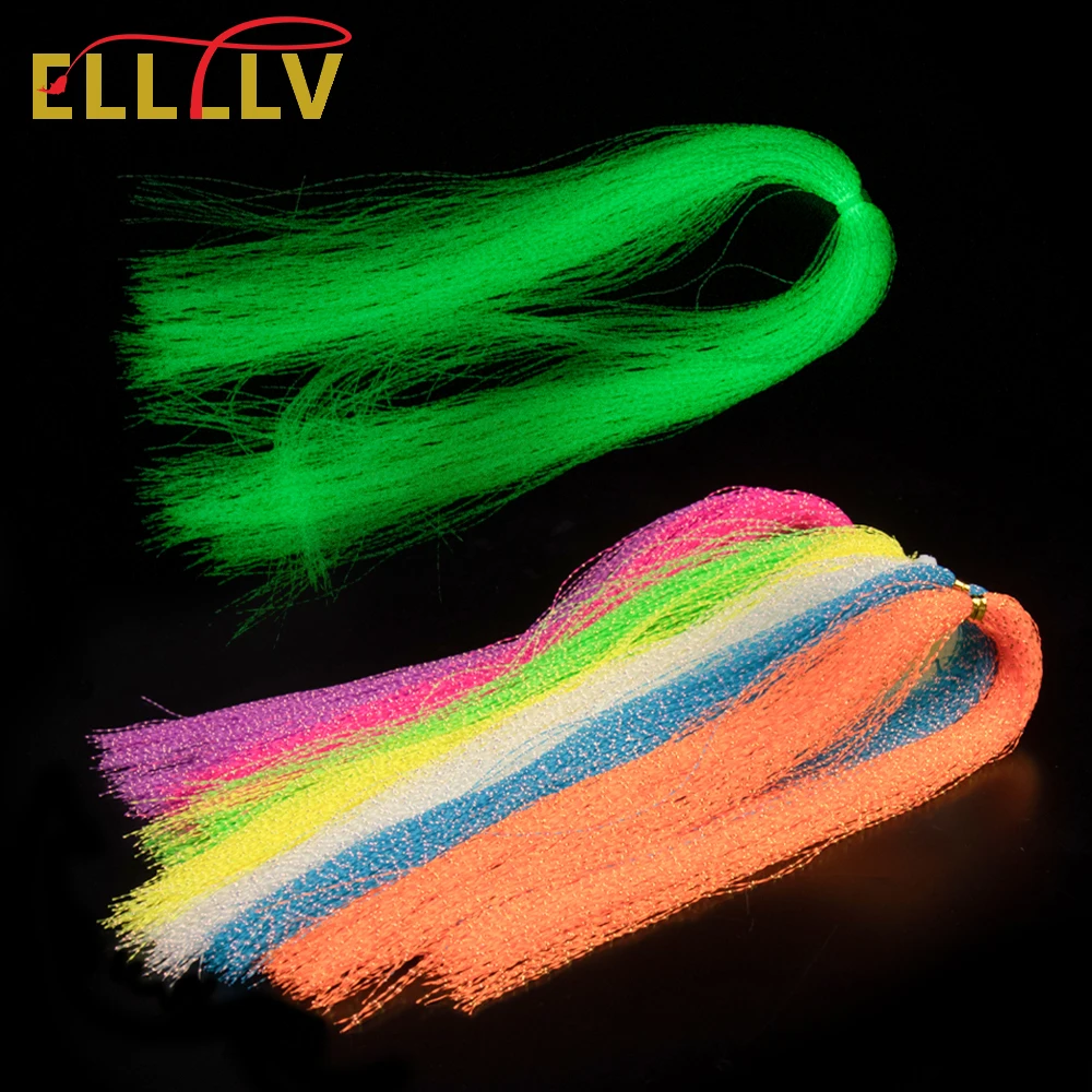 Elllv Luminous Holographic Flashabou Colorful Sea Jigging Señuelo Fabricación Material Pesca con mosca Atar Crystal Flash Tinsel