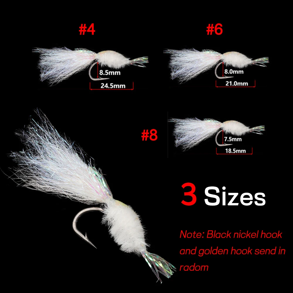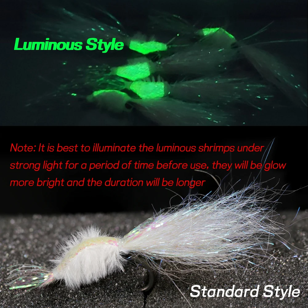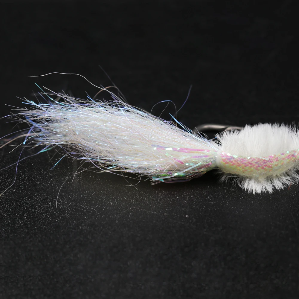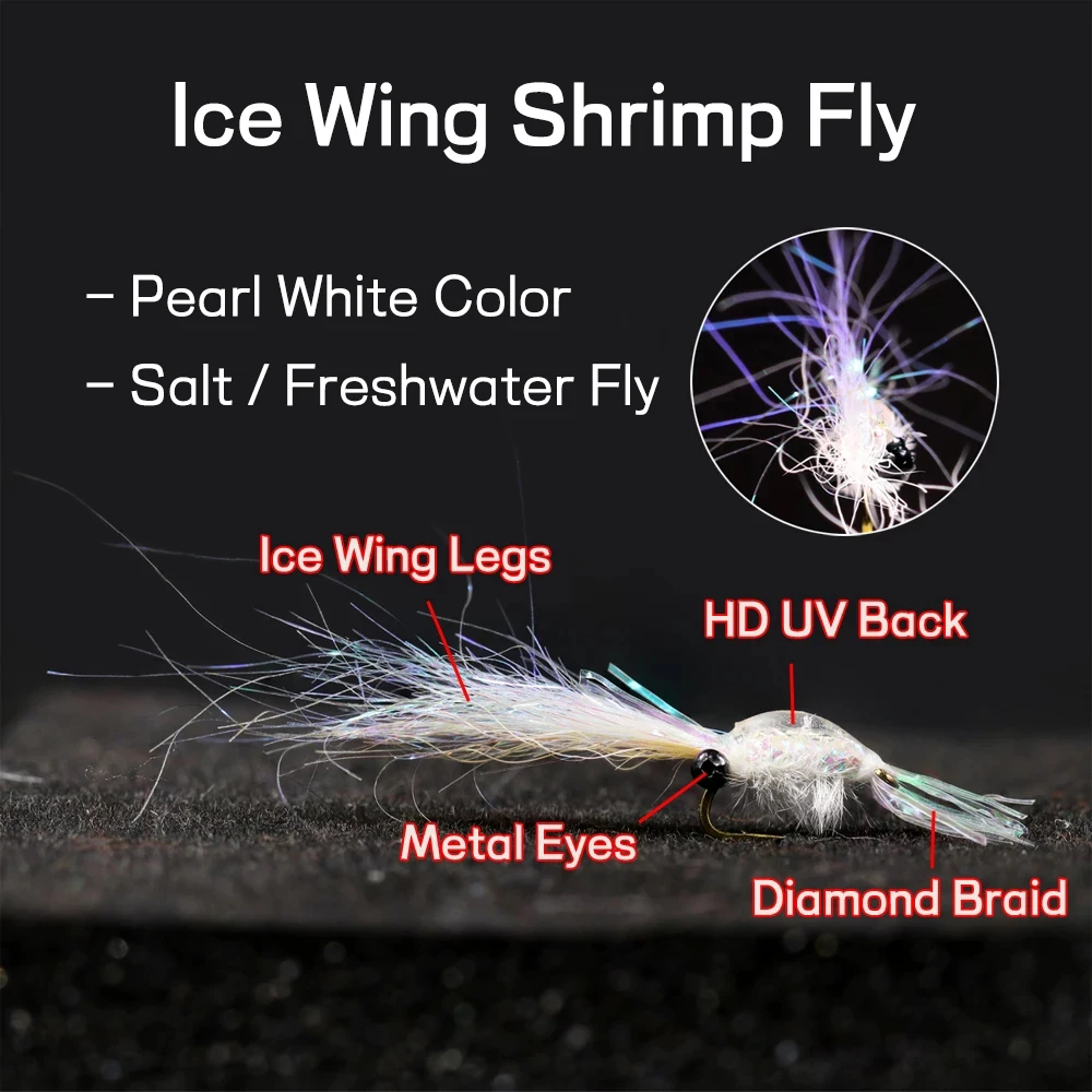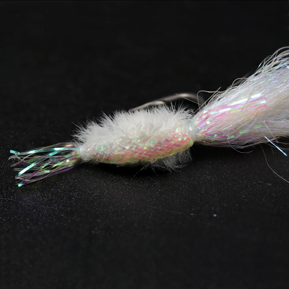 Elllv 7 unids/caja #4 #6 #8 perla blanca hielo ala Camarón sal mosca luminosa agua salada agua dulce moscas lubina trucha salmón señuelo cebo
