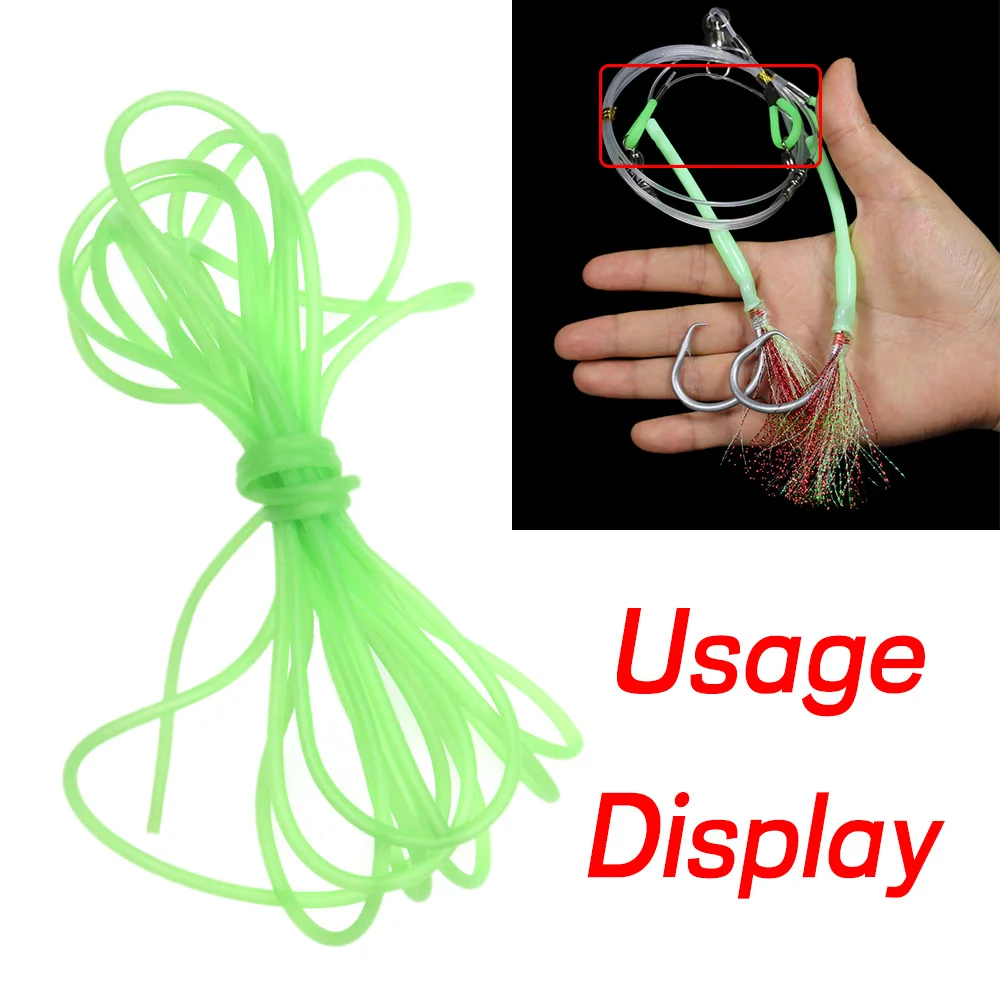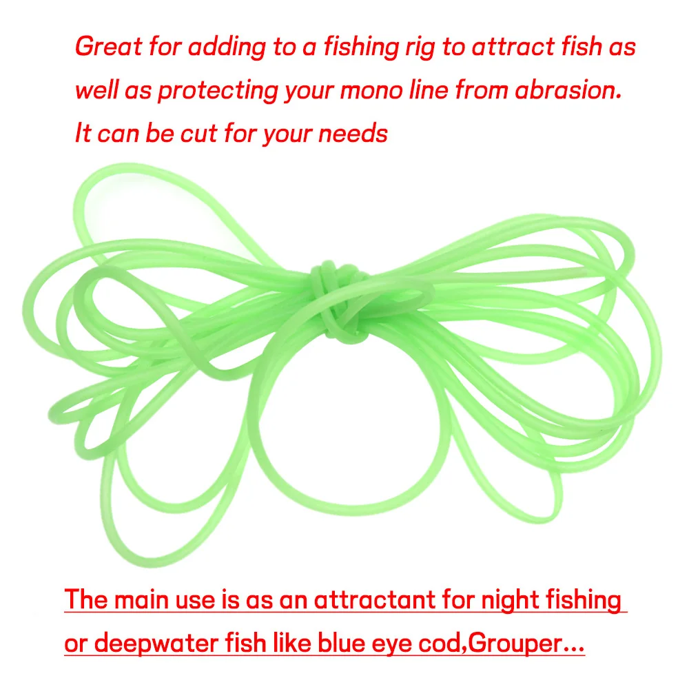 Ideal para agregar a un aparejo de pesca para atraer peces y proteger su línea mono de la abrasión. Se puede cortar según sus necesidades. El uso principal es como atrayente para la pesca nocturna o peces de aguas profundas como bacalao de ojos azules, Grouper...