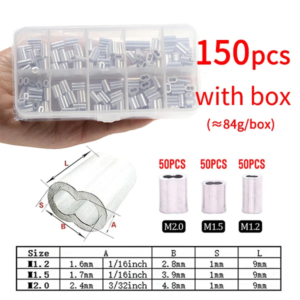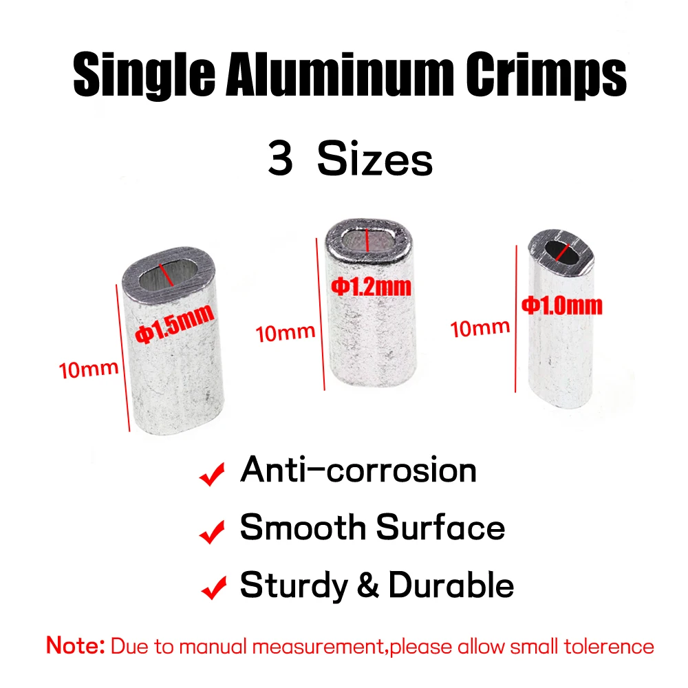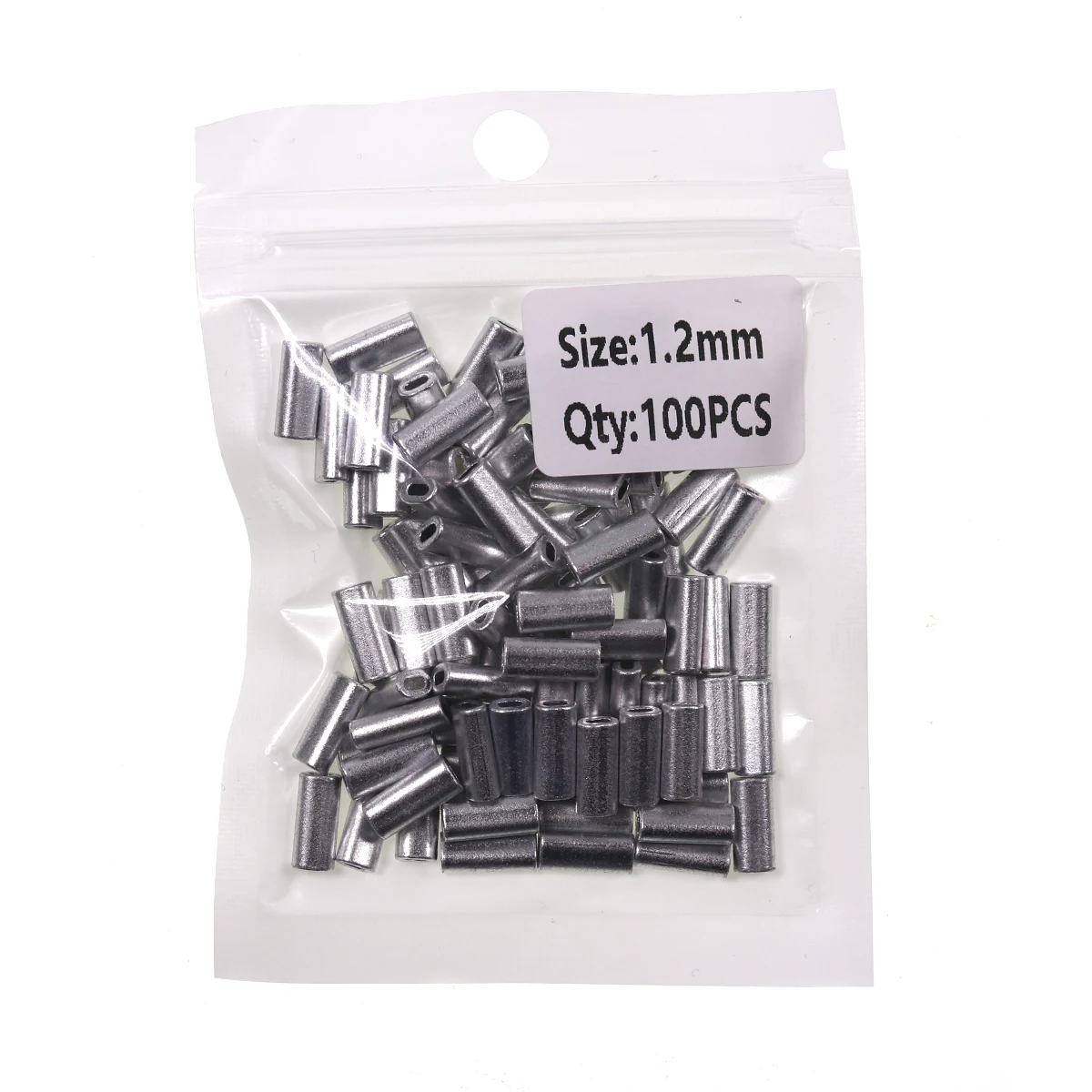 Tubos planos de aluminio individuales de 100, accesorios de conector de aparejo de pesca de agua salada, 1,0/1,2/1,5mm