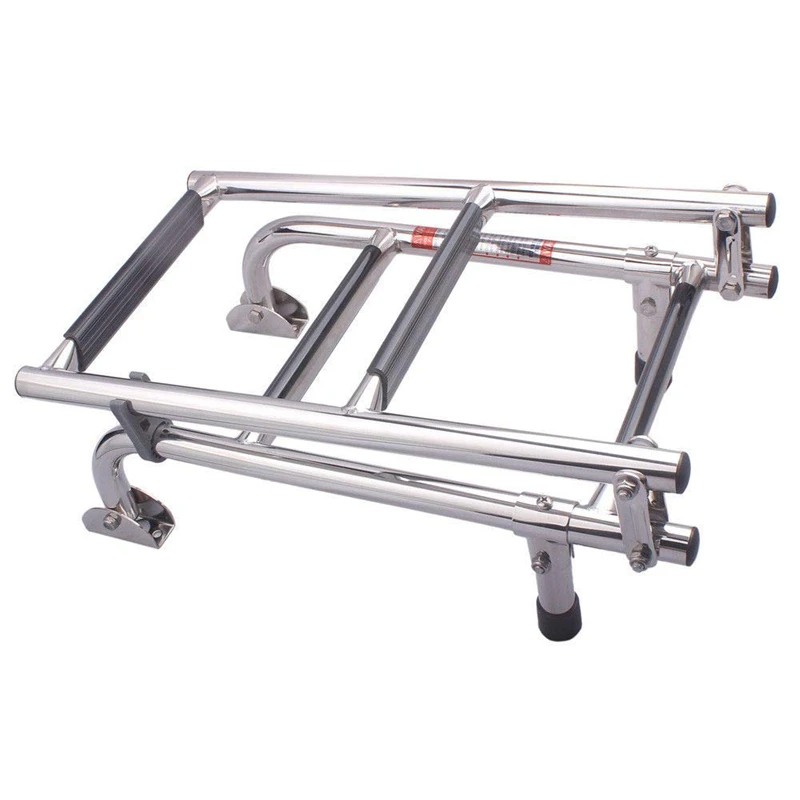 Empuñaduras de escalera de barco de acero inoxidable de 4 escalones, 2 + 2 escalones, montaje en popa, escalera de popa plegable, escalera extraíble montada en pala