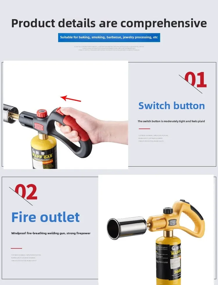 Encendedor de soplete de Gas portátil para exteriores, soplete de cocina, rociador de llama de propano, lanzallamas, pistola de encendido de alta calidad
