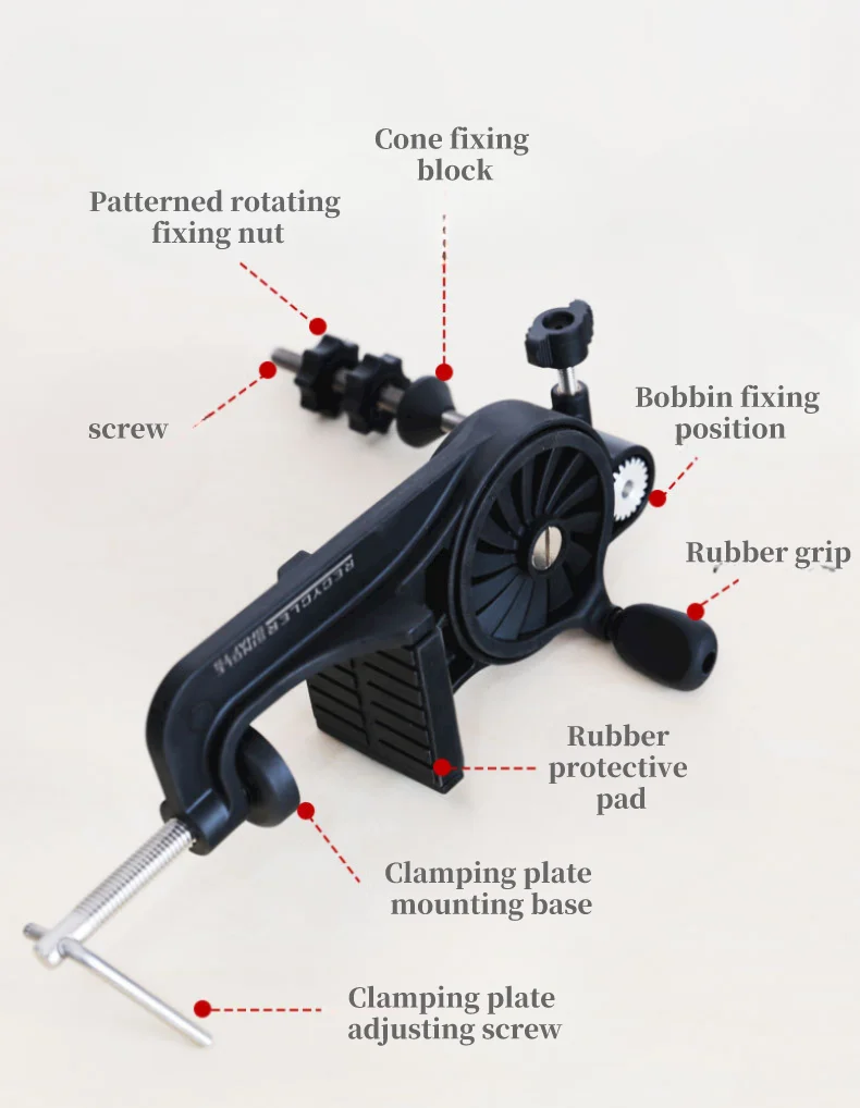 3 、 【Bobinado de alta velocidad】 La máquina de cola de línea de pesca adopta una relación de transmisión de 3,5: 1, lo que ahorrará más tiempo y esfuerzo para el bobinado. La longitud del tornillo se puede ajustar a 10CM, y el ancho máximo de su abrazadera es de 4,3 CM, que se puede adaptar a los bancos de trabajo
