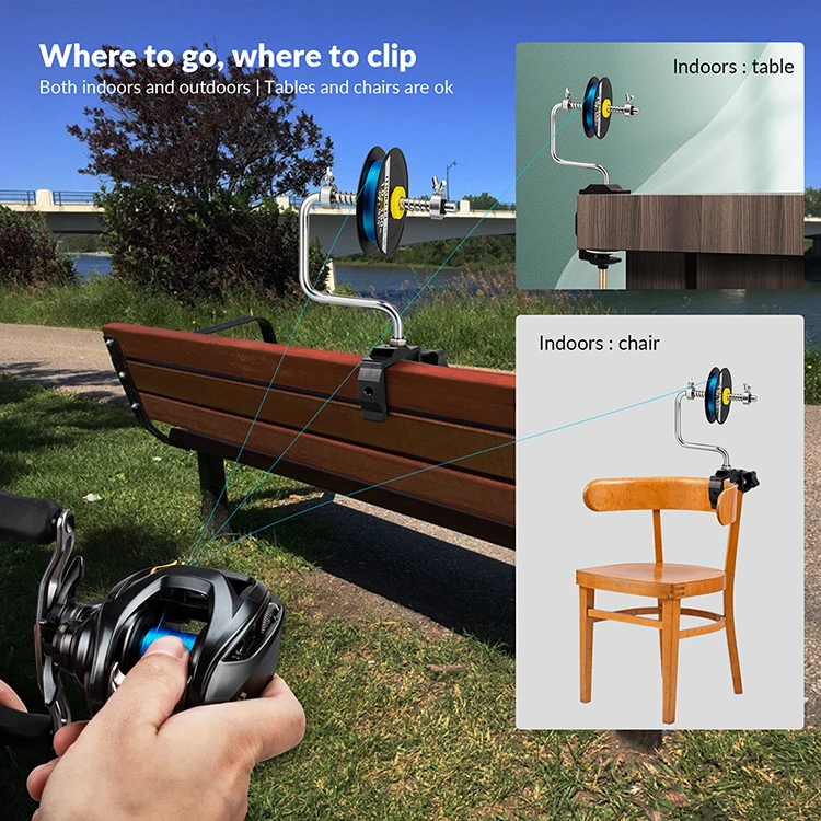 2.Enrollador de líneas de uso múltiple: el más imprescindible para los pescadores.Múltiples usos, ya sea que esté en casa, en barcos, en camión o básicamente en cualquier lugar, puede llevar y usar fácilmente este enrollador de hilo de pescar.Es fácilmente portátil y se puede montar en cualquier lugar al que pueda sujetarlo.Abrazan la parte inferior, no están limitadas por superficies planas o lisas, y obtendrá una mejor sujeción al carrete sujetándolo en el borde del escritorio, la silla, etc.