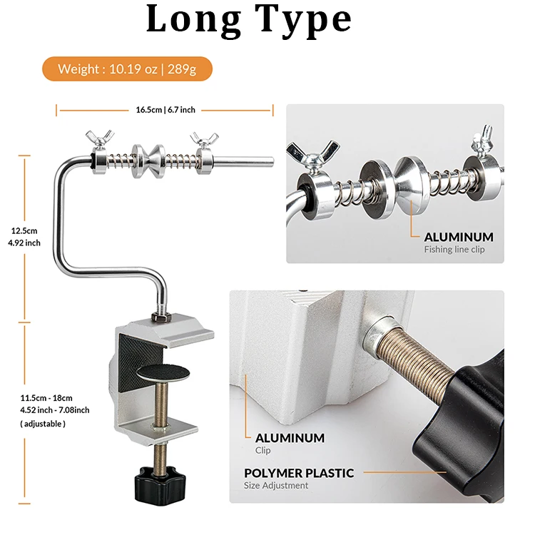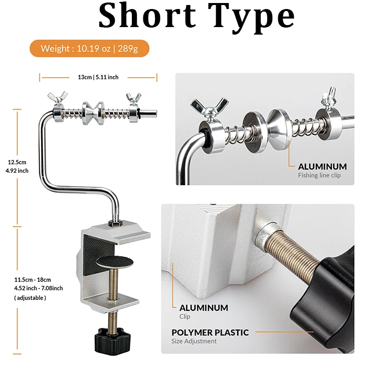 4. Hay 2 formas de fijar el enrollador de línea con el escritorio, vertical u horizontal como acostumbra. El ancho máximo del carrete para el tipo largo es de 8cm/3,15 pulgadas, el tipo corto es de 5cm/1,96 pulgadas.