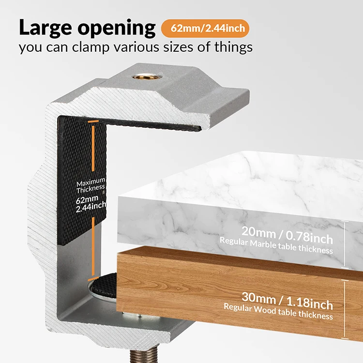 El grosor máximo se puede fijar: 6,2 cm/2,4 pulgadas