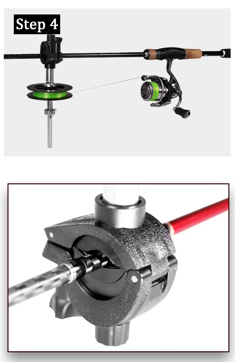 The line spooler clamp can hold the rod blank from 6.5mm-17mm in diameter.
