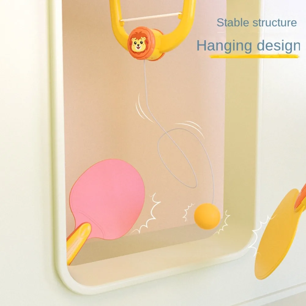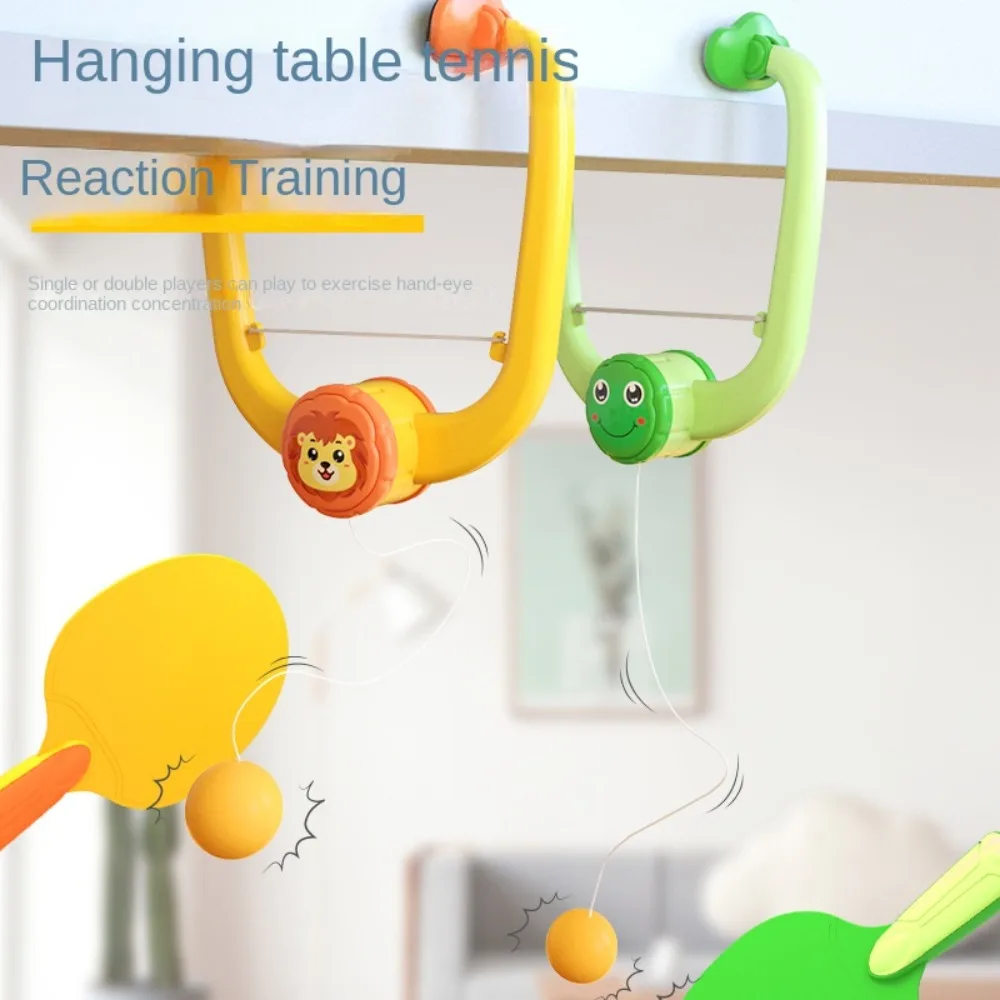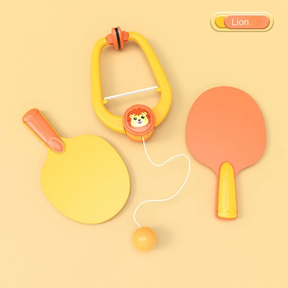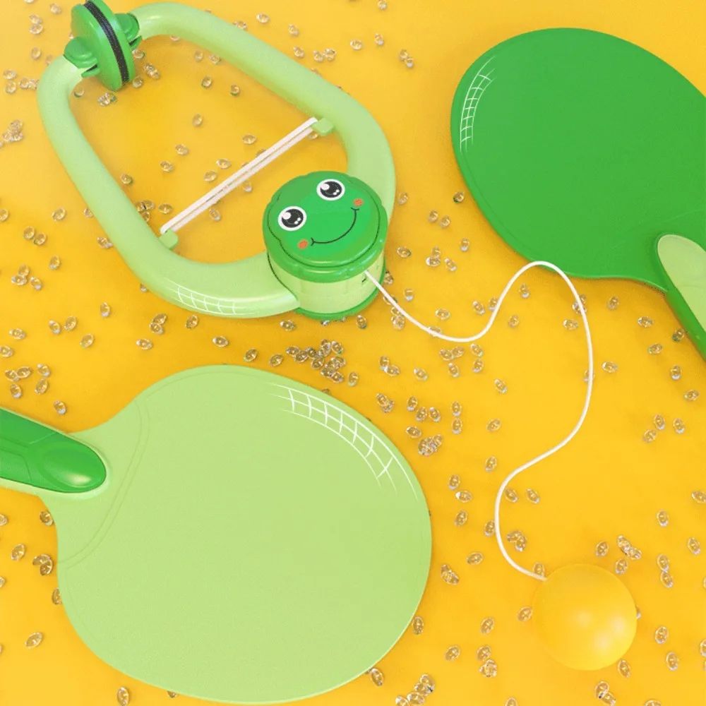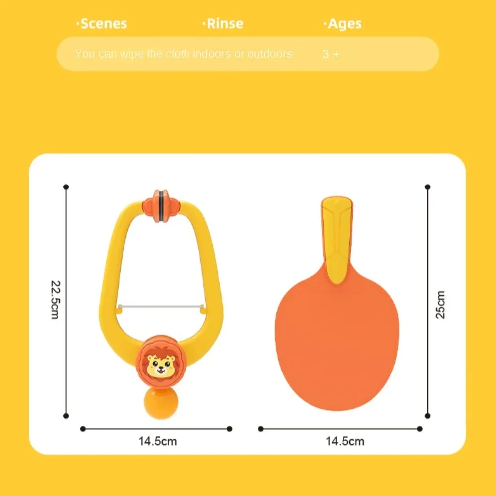 Material: ABS + PP Estilo: Rana, León Raqueta: 25*14,5*3cm (9,84*5,71*1.18in) Percha: 14,5*22,5*6,5 cm (5,71*8,86*2.56in) aplicable: Edad 3 y más escenarios aplicables: tanto en interiores como en exteriores embalaje: 2 raquetas de piezas + 1 colgador + 1 pelota de tenis de mesa