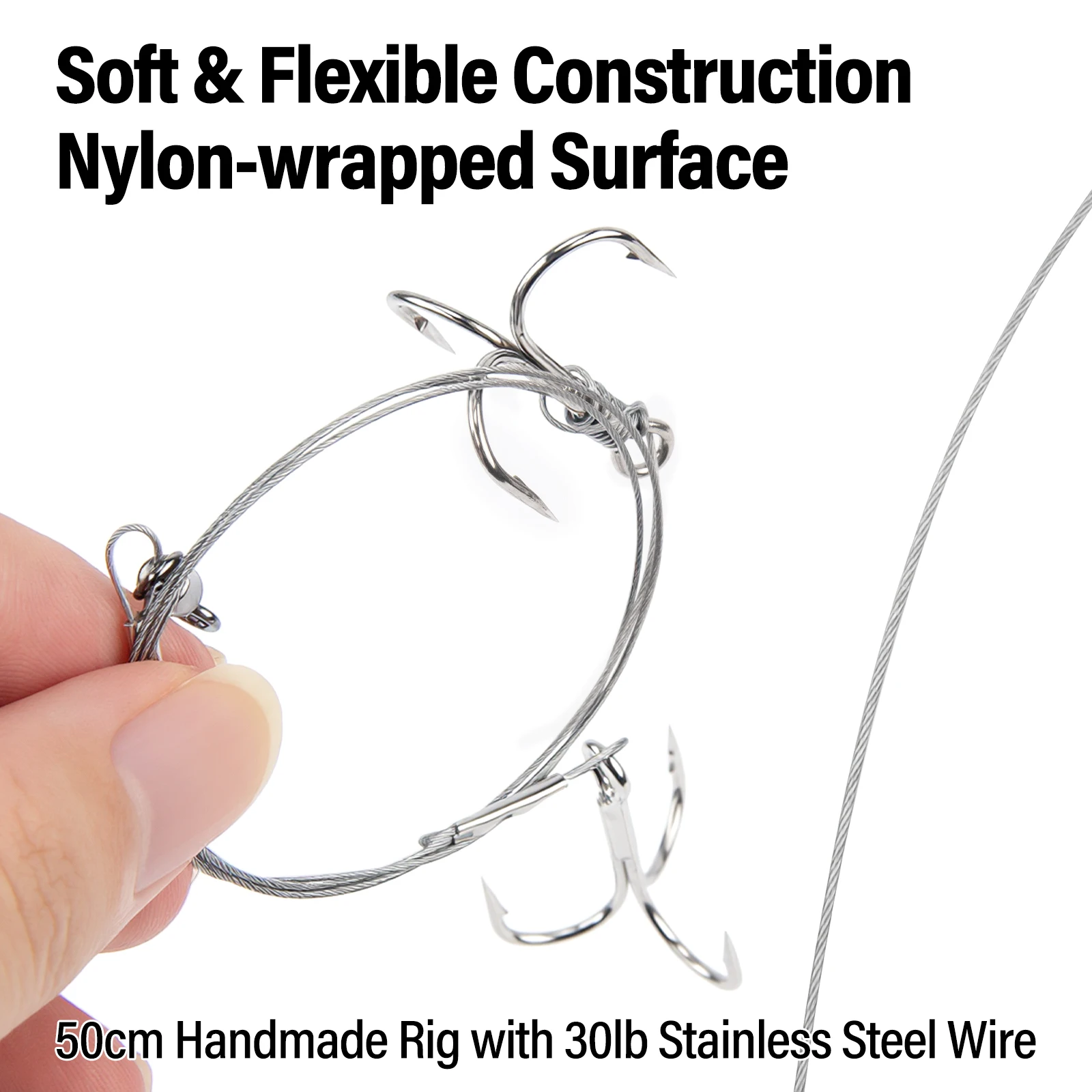 Material premium: hecho de alambre de acero inoxidable trenzado con revestimiento de nailon, este equipo de anzuelo líder de alambre de pesca proporciona alta resistencia a la tensión, durabilidad y resistencia a la corrosión para un uso duradero.