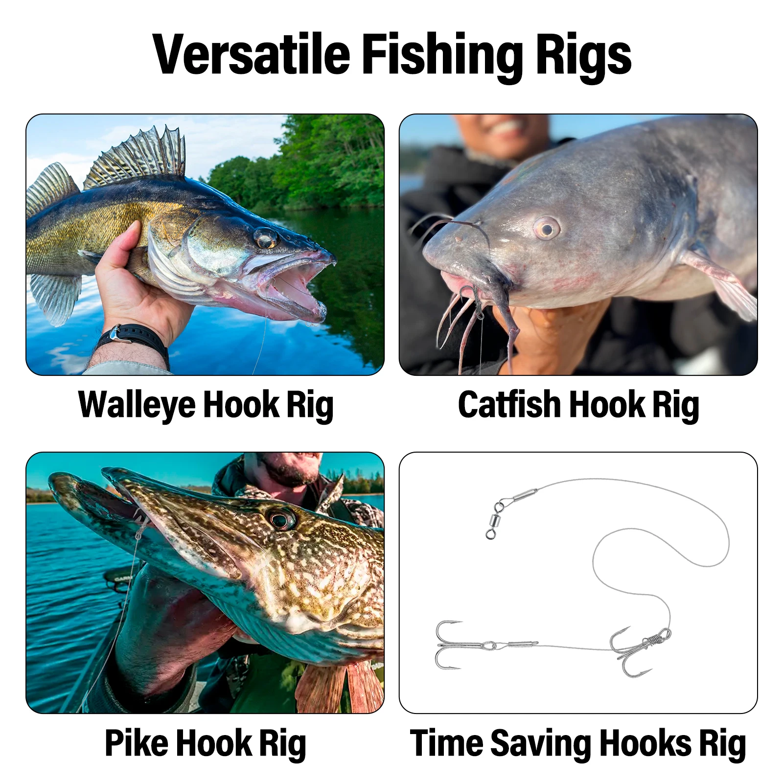 Amplia aplicación: los aparejos preensamblados permiten a los pescadores pasar más tiempo pescando y menos tiempo atando líneas.Perfecto para lucios, luciopercas y bagres al lanzar, navegar o en lagos y ríos.
