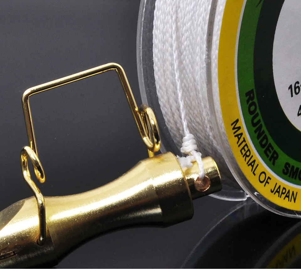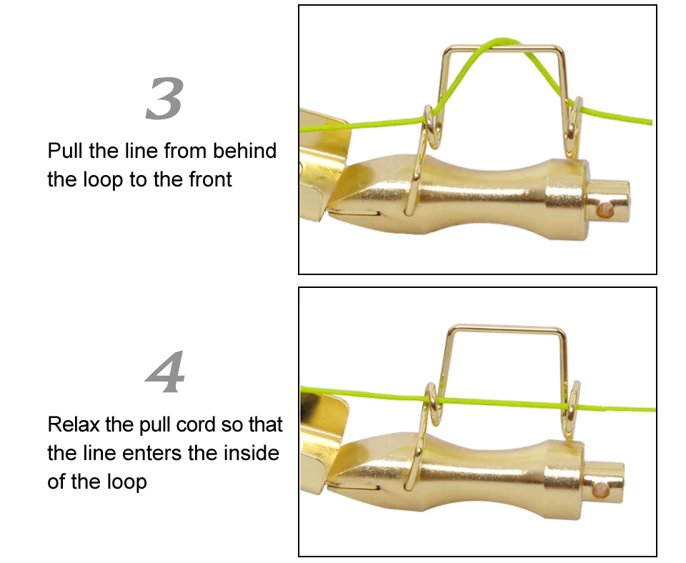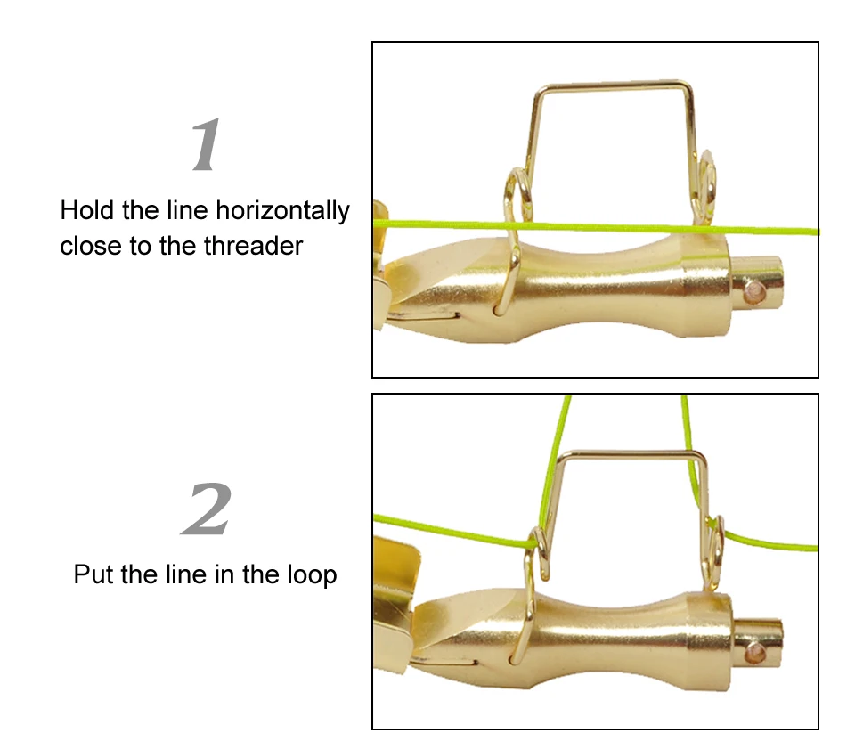 1. Coloque el sedal horizontalmente conectado al enhebrador.