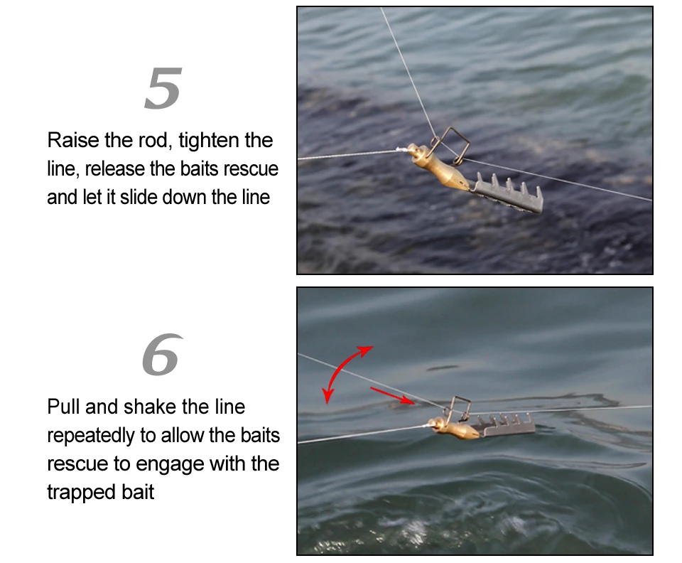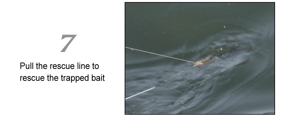 7. Tire de la cuerda del rescatador para pescar el cebo atrapado.