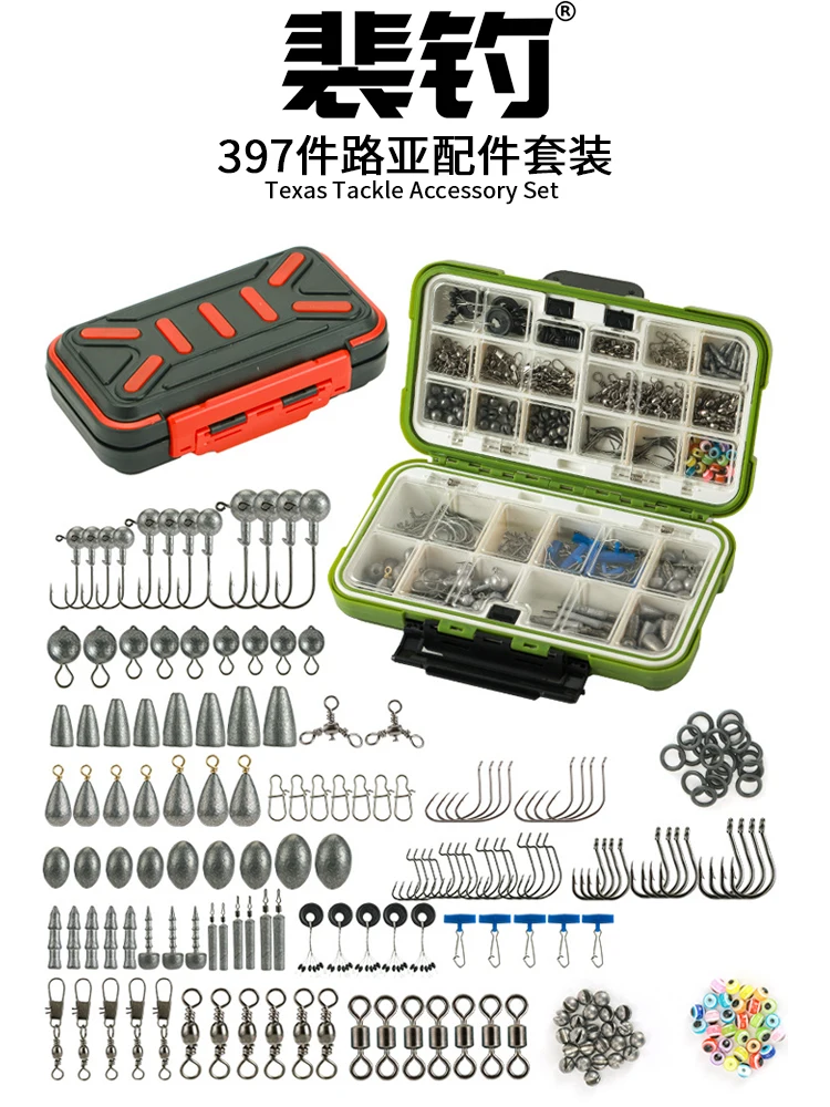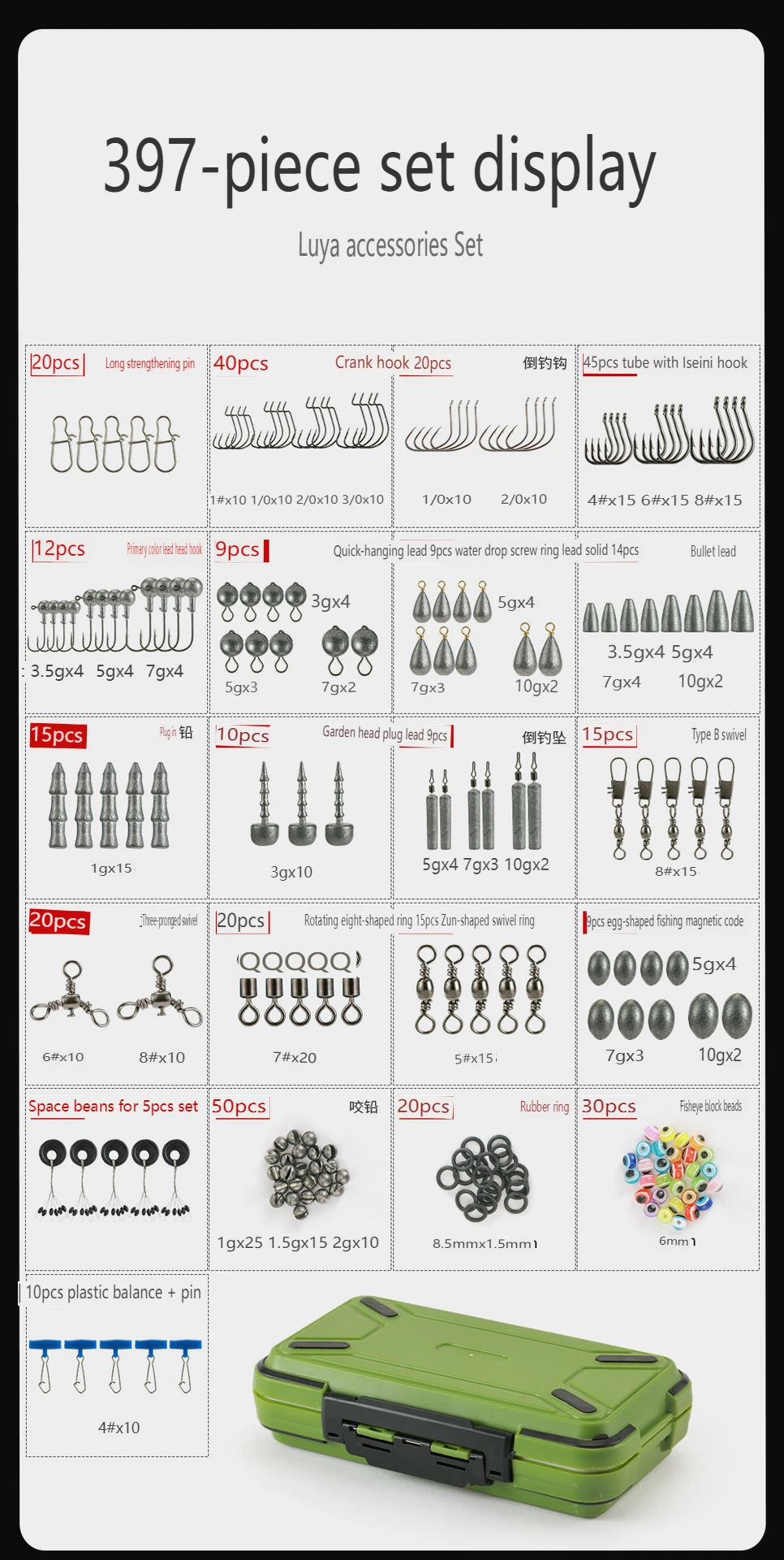 Equipo de pesca PD, 397 Uds., juego de accesorios LUYA, aparejos de Texas, cuentas de bloqueo, caja LUYA, libro de accesorios de pesca en el mar