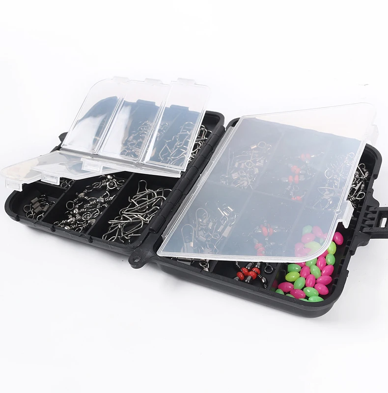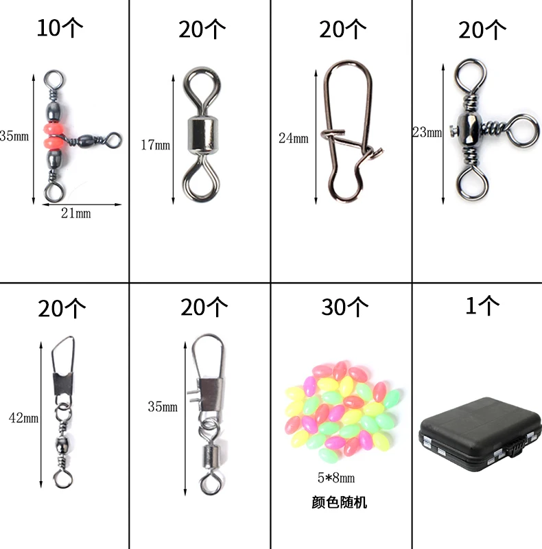 Equipo de pesca PD, accesorio de pesca Lua en caja de 140 piezas, conector giratorio de ocho anillos, conjunto iso