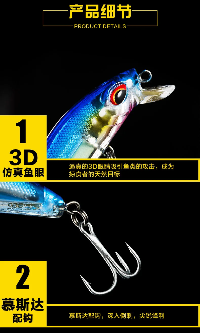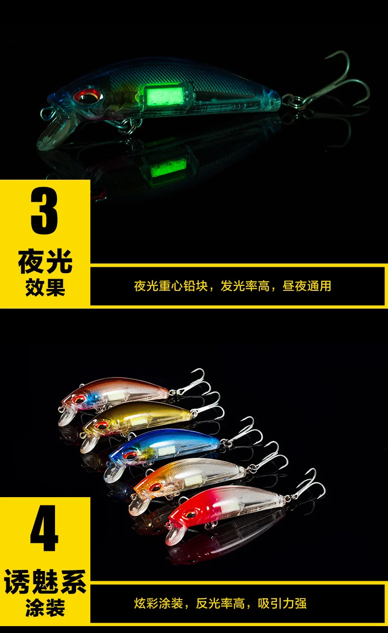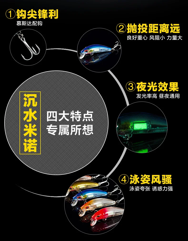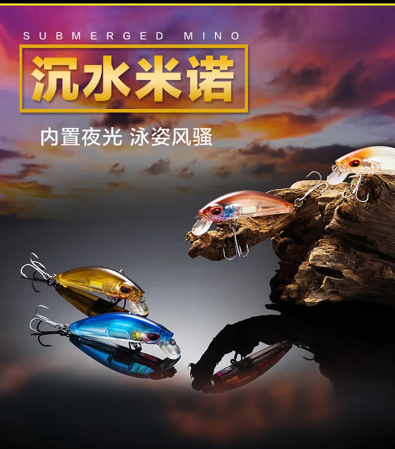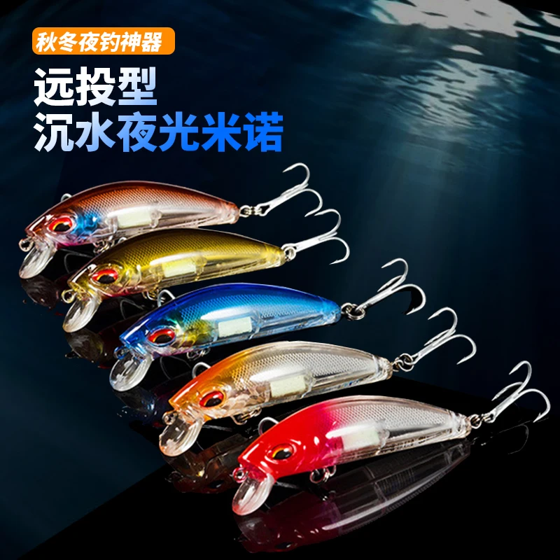 Equipo de pesca PD luminoso, Mino sumergido, corredor de carretera, cebo falso, aviador de agua dulce