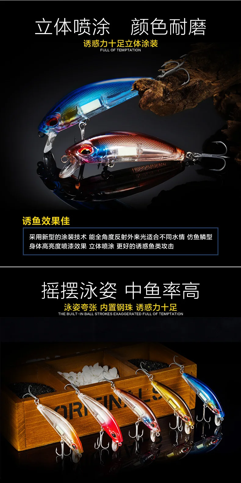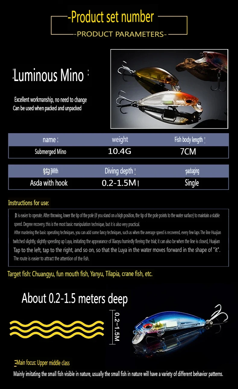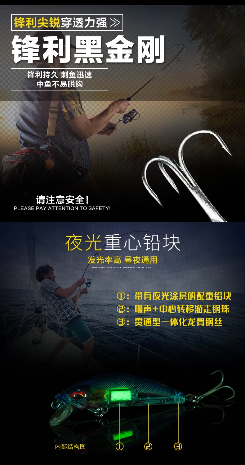 Equipo de pesca PD luminoso, Mino sumergido, corredor de carretera, cebo falso, aviador de agua dulce