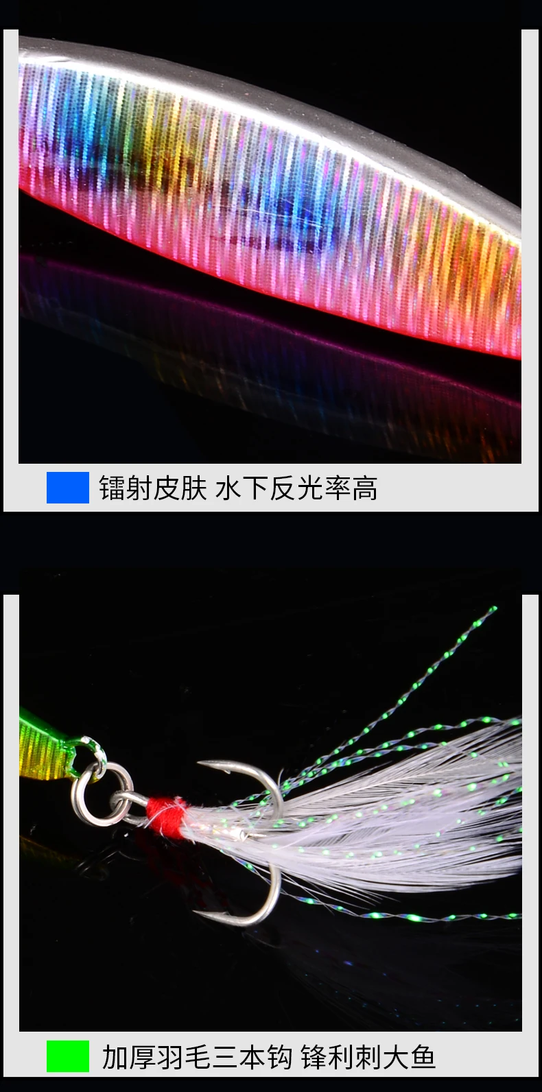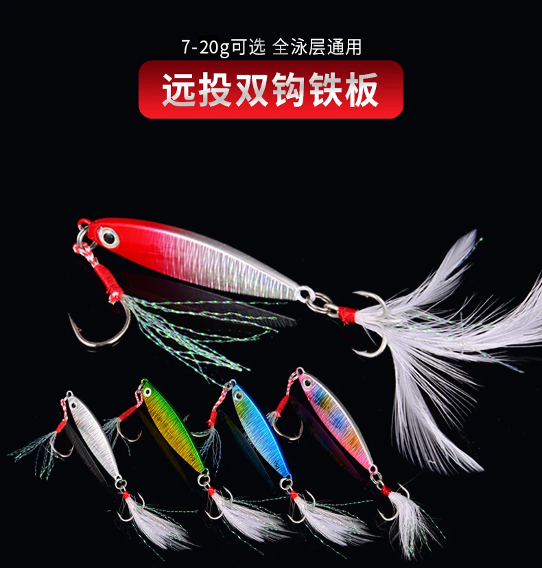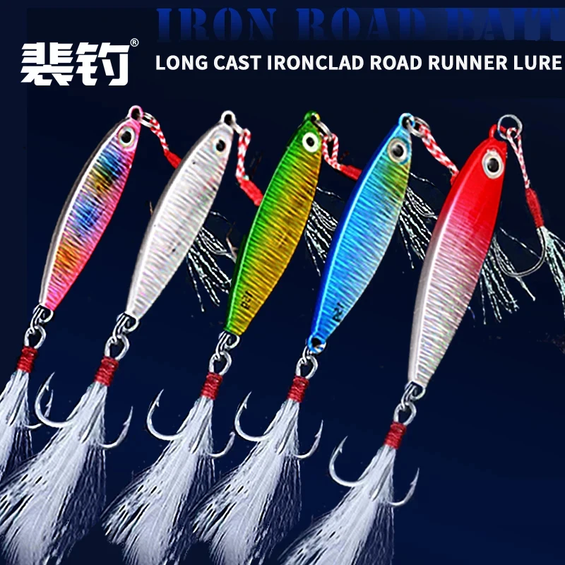 Equipo de pesca PD, placa de hierro, juego de cebo de corredor de carretera, ganchos dobles, lentejuelas de Pesca de Mar de fundición larga, vib flotante hacia abajo, Warbler de pesca