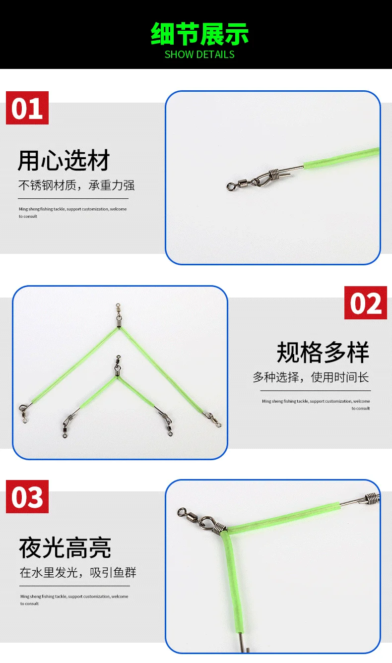 Equipo de pesca PD, tenpin luminoso en espiga, pesca en el mar, accesorios de acero inoxidable, tenpin dividido, ocho anillos, equipo de pesca