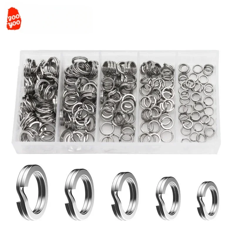 Equipo de pesca de plata de piezas, juego de anillos dobles de aplanamiento, anillo doble de aplanamiento, subanillo de conexión, 200
