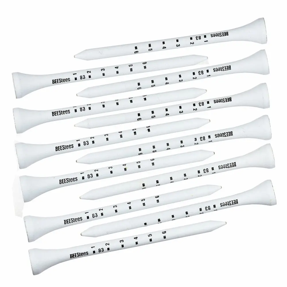 Material: madera Tamaño: 83mm Color blanco Estilo: con escala El paquete incluye: 20 piezas de tees de golf