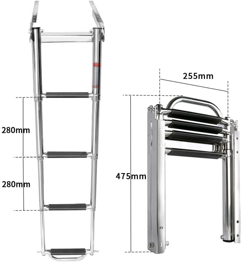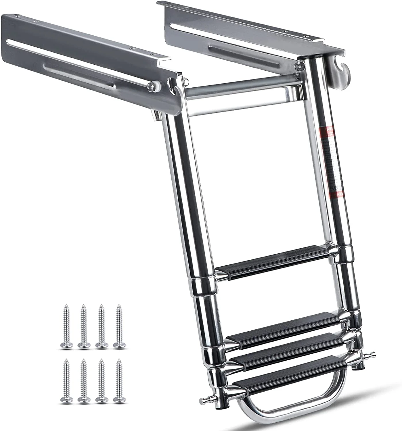 【Compacto y conveniente】: Los escalones telescópicos de esta escalera de barco se pliegan rápidamente y sin esfuerzo en el agua para un abordaje seguro. Para el almacenamiento, los escalones de acero inoxidable de perfil bajo se pliegan de forma compacta y también le dan a esta escalera de embarque un aspecto muy elegante.