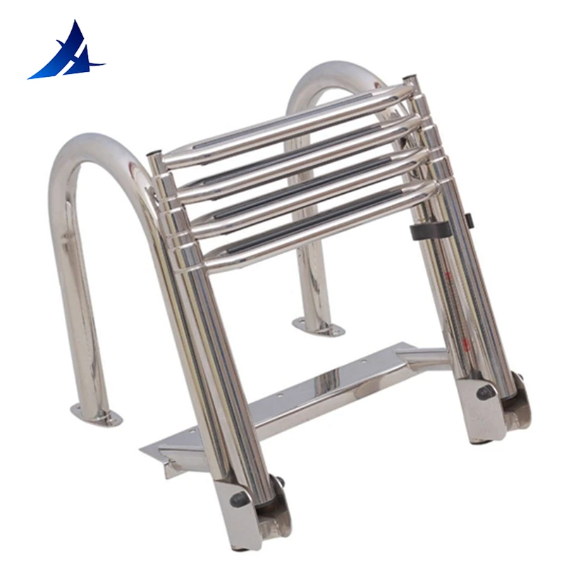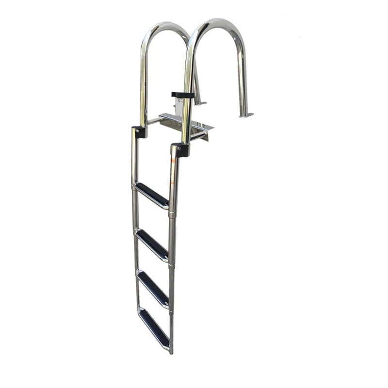 Escalera telescópica de acero inoxidable, 4 escalones, plataforma superior para piscina, muelle de natación