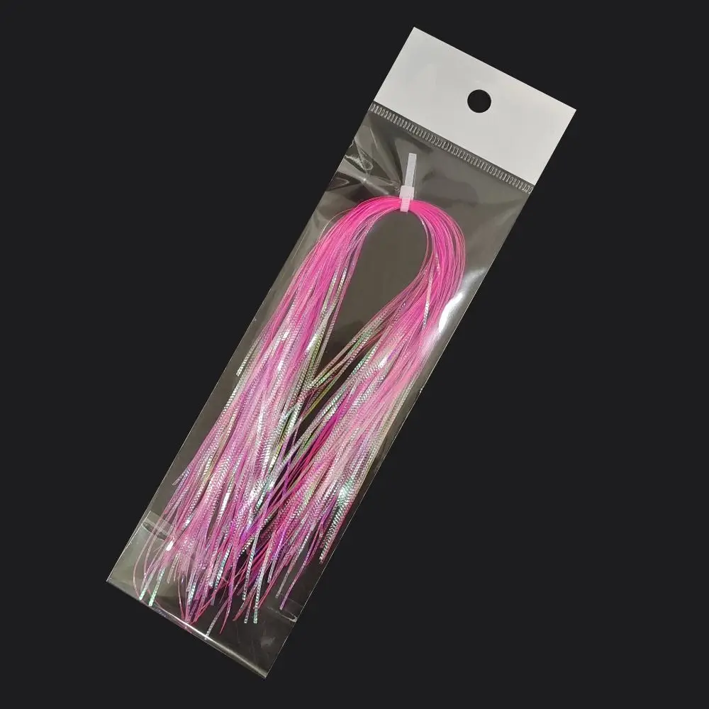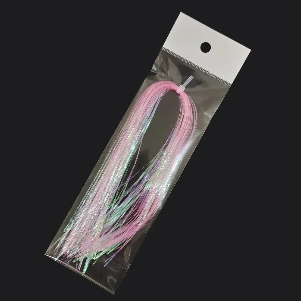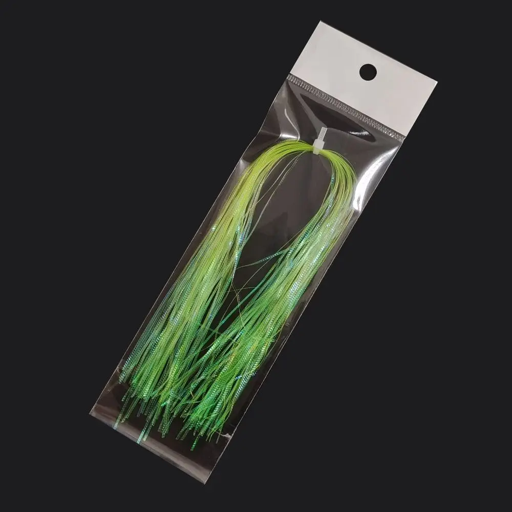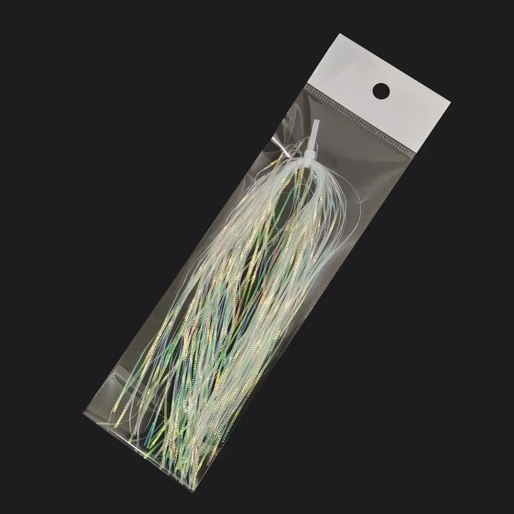 Hilos de tornillo flashabou empaquetados en bolsa Tamaño aproximado 28cm ~ 30cm de longitud (pliegue en bolsa) Color: hasta 10 colores para la opción Categoría: Kit de señuelo Tipo: Cebo artificial Nombre: paquete de atado de moscas incluido: 1 bolsa de materiales de atado de moscas