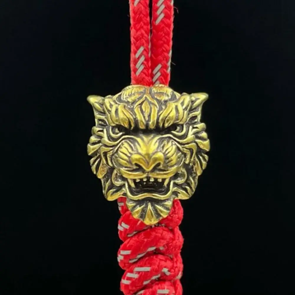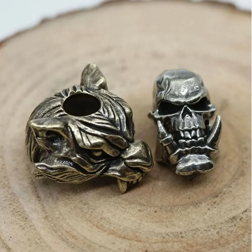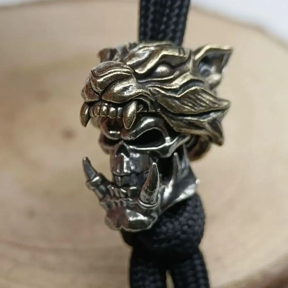Item: Animal Tiger Retro Double-layer Skull Brass Paracord Bead DIY Handmade Bracelet Lanyard Pendant