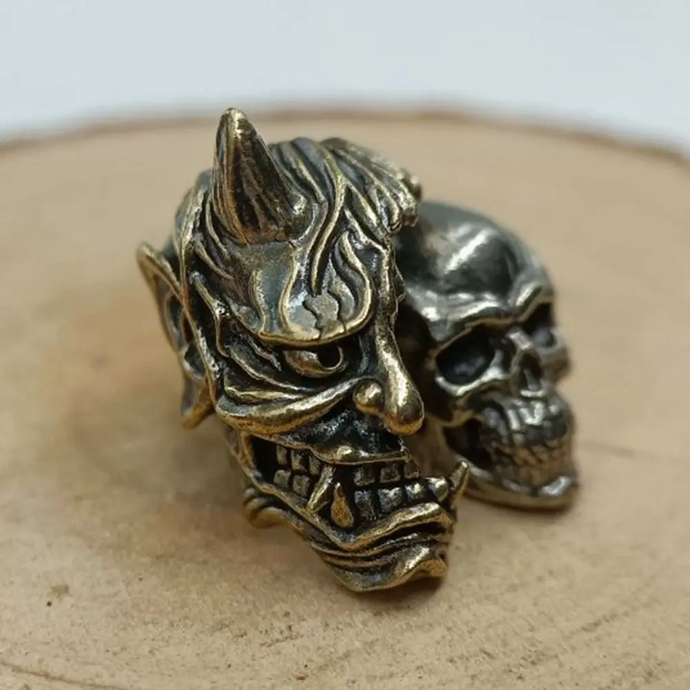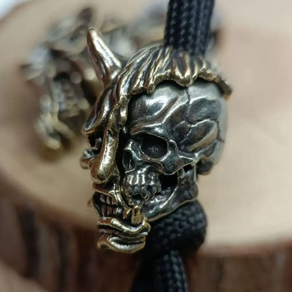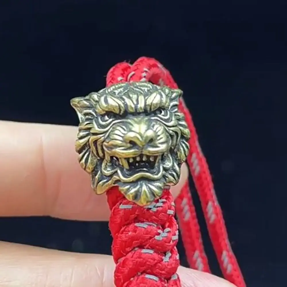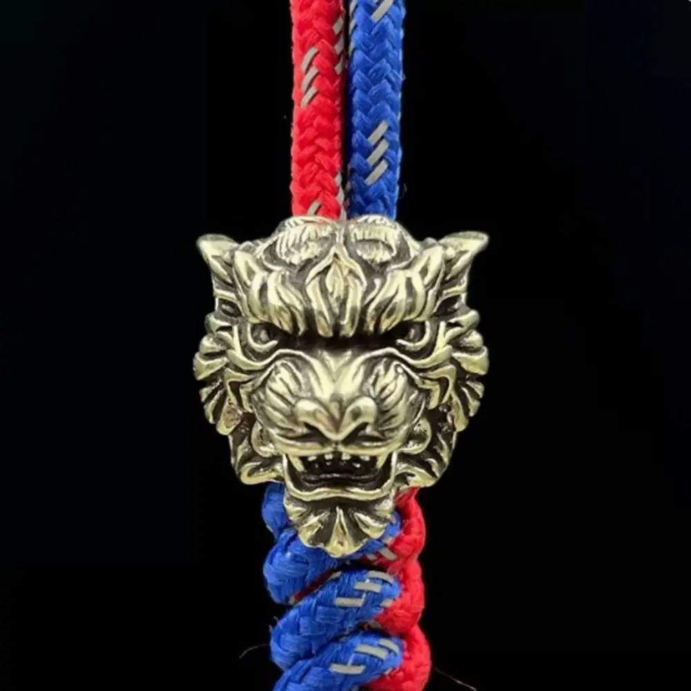 Item: Animal Tiger Retro Double-layer Skull Brass Paracord Bead DIY Handmade Bracelet Lanyard Pendant