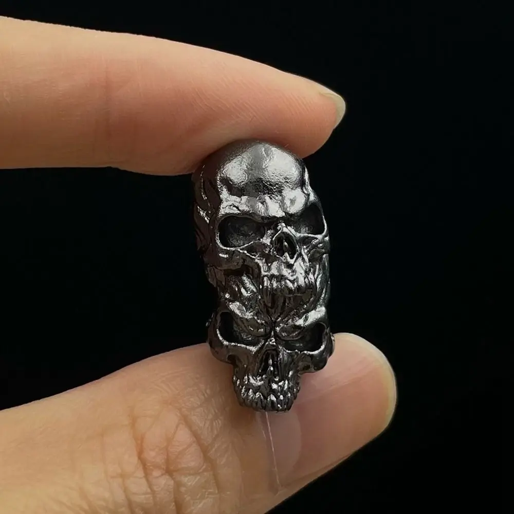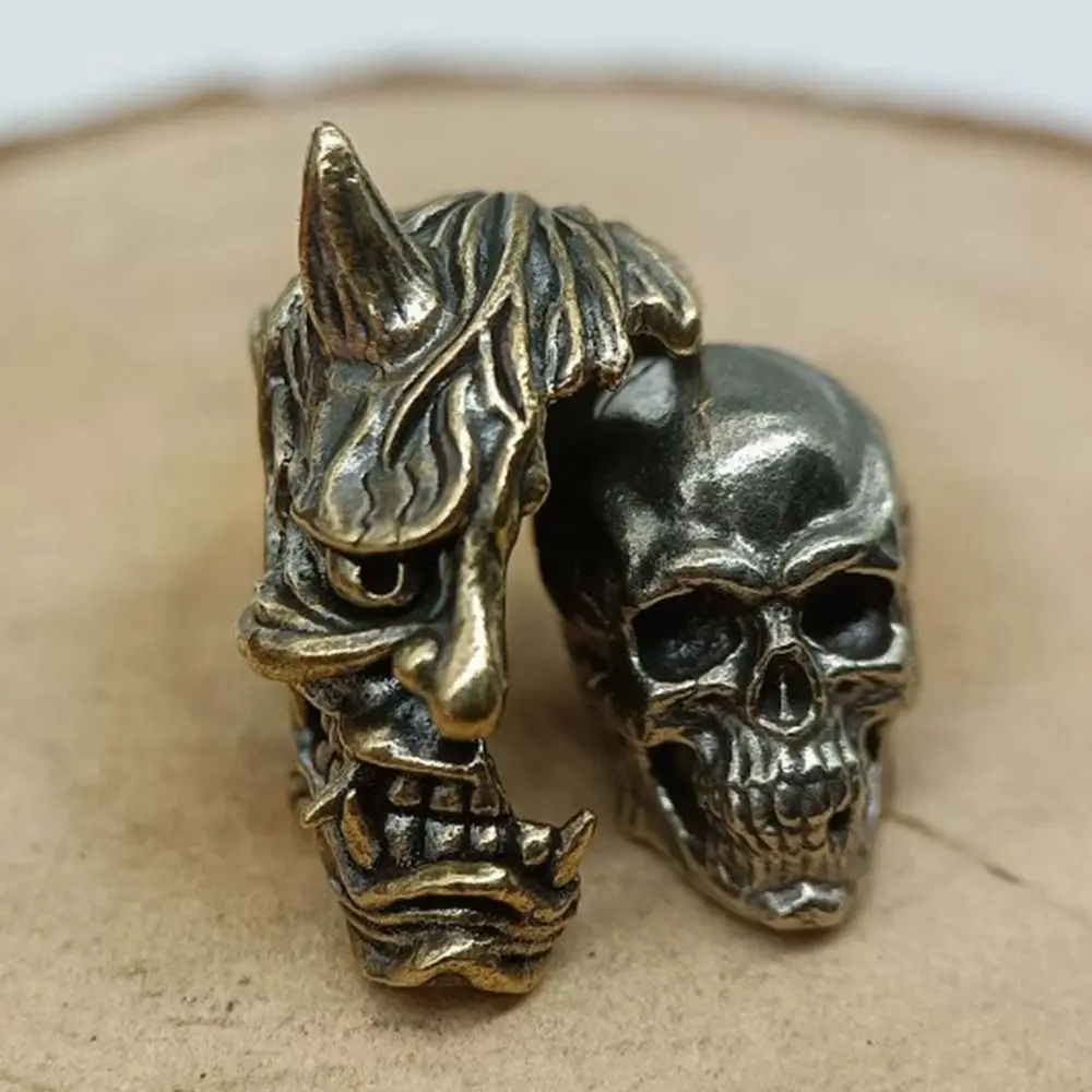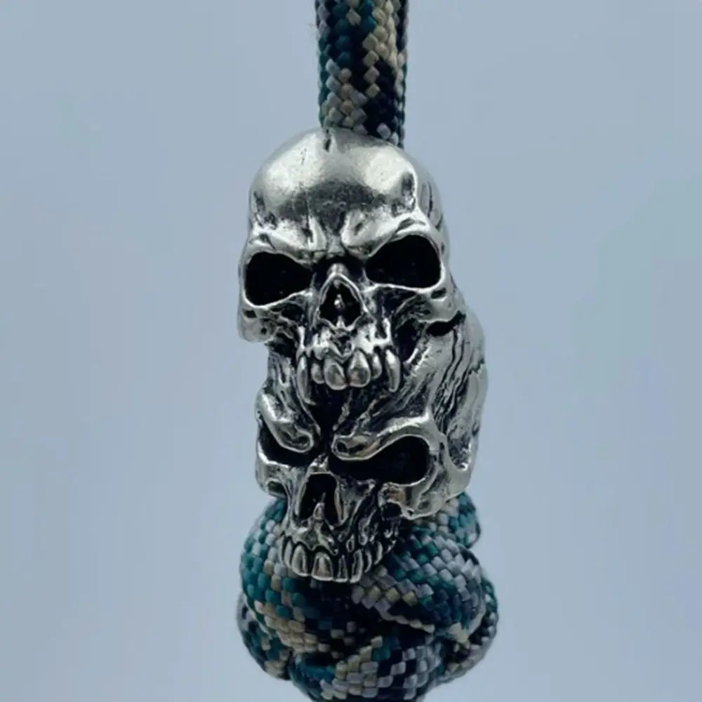 1pc Animal Tiger Retro Double-layer Skull Brass Paracord Bead DIY Handmade Bracelet Lanyard Pendant