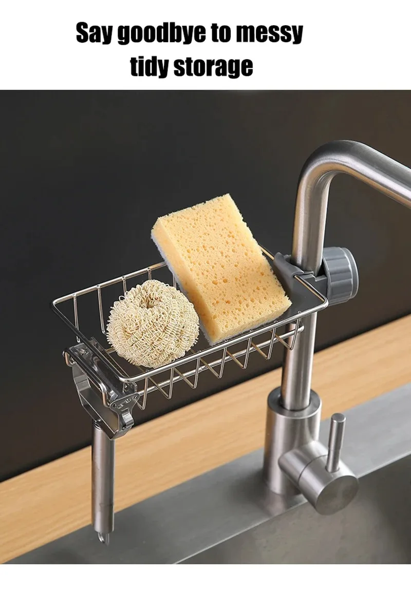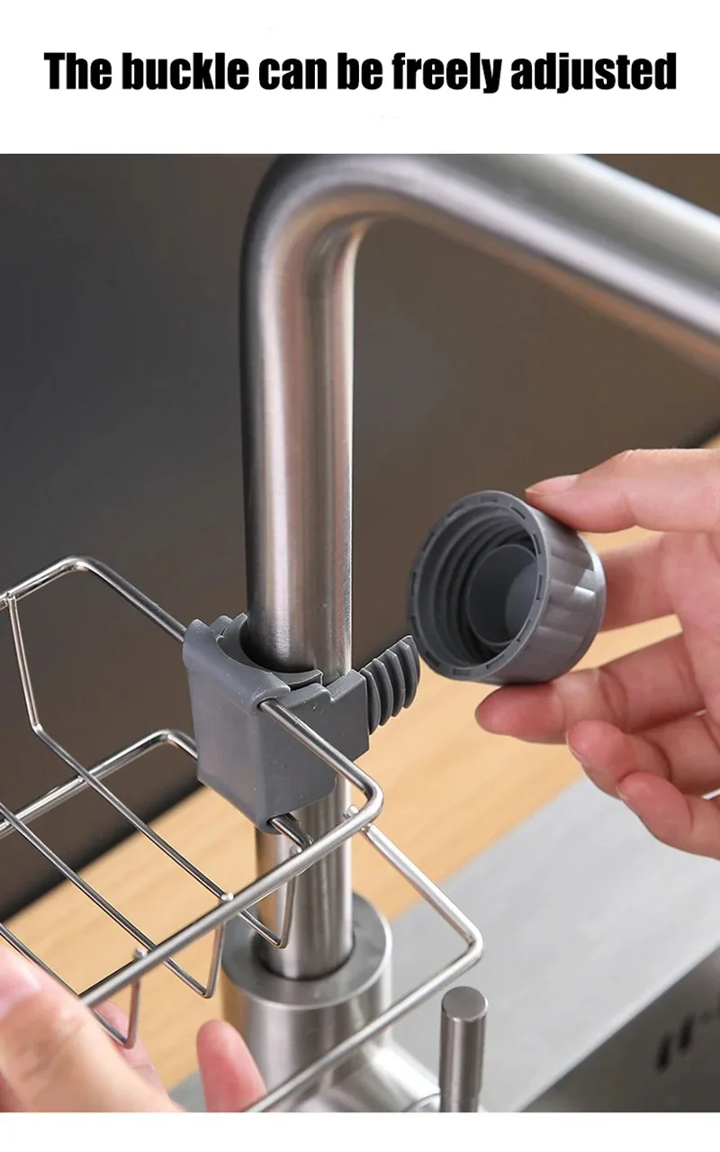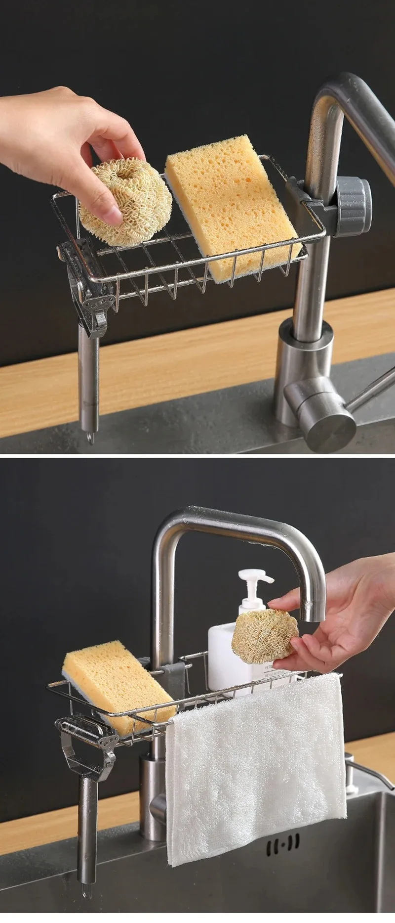 Escurridor de fregadero de acero inoxidable, estante de pared para fregadero, almacenamiento de esponja, estante de tela