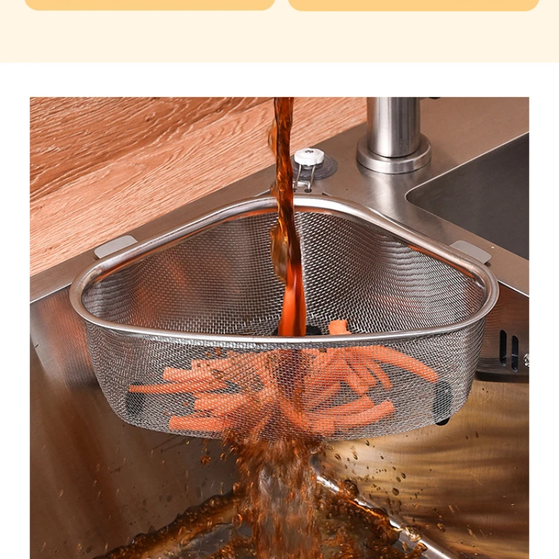 Fregadero de cocina cesta de drenaje Acero inoxidable triángulo comida verduras pelar huevo filtro organizador cocina estante escurridor