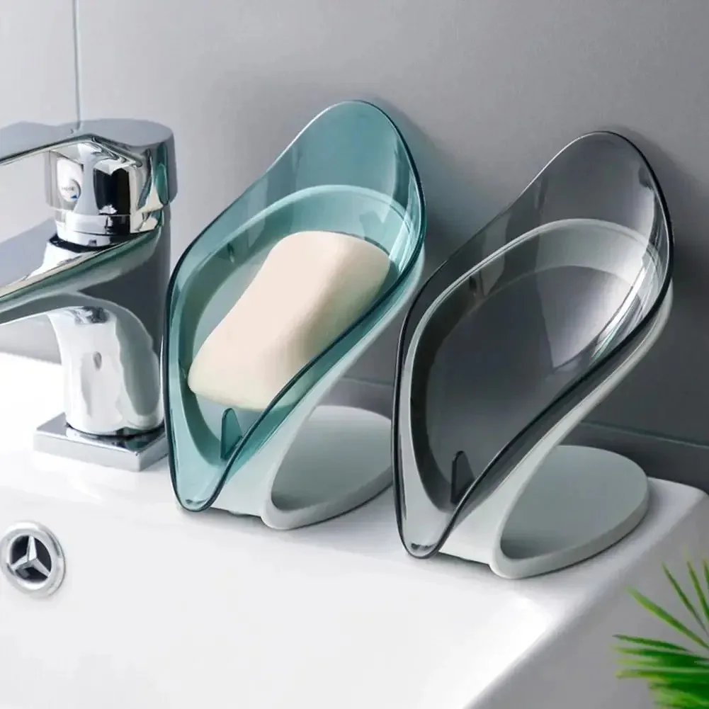 Escurridor de jabón de pie con ventosa en forma de hoja, soporte sin perforaciones, cosas los productos, jabonera de pared para artículos de baño, 1-2 uds.