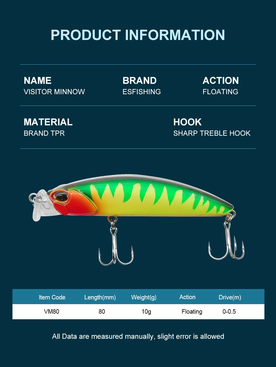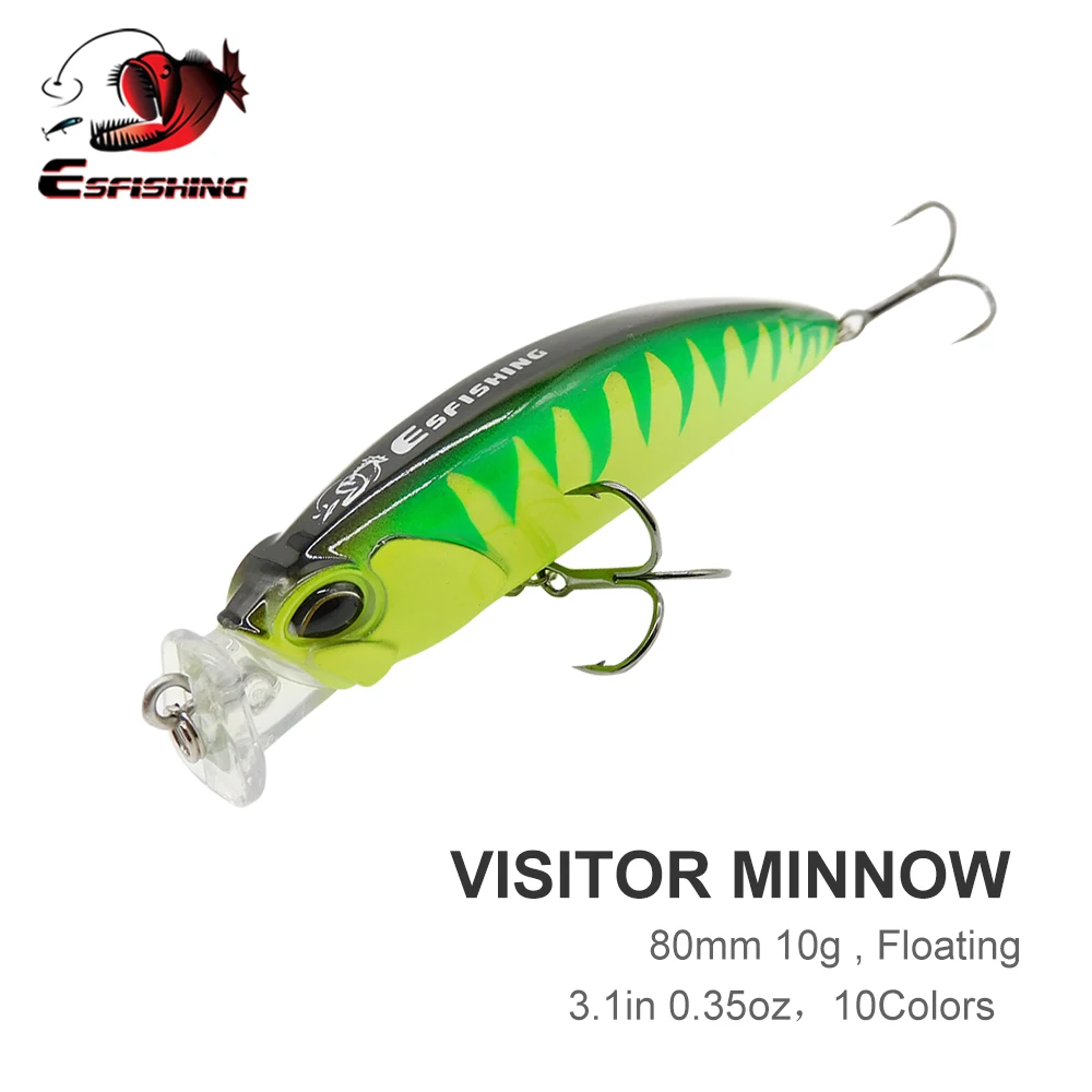 ESFISHING 8cm 10g flotante Topwater manivela Popper cebo duro señuelo de pesca Visitor Minnow unidad de caída de larga distancia 0-0,5 m