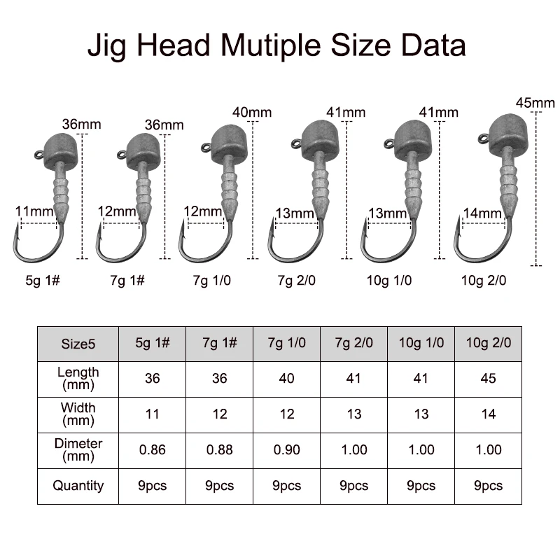 ESFISHING-anzuelo con cabeza plomada, 9 piezas, 5g, 7g, 10g, anzuelos de pesca con cabeza líder de alta calidad para señuelos blandos, aparejos de pesca