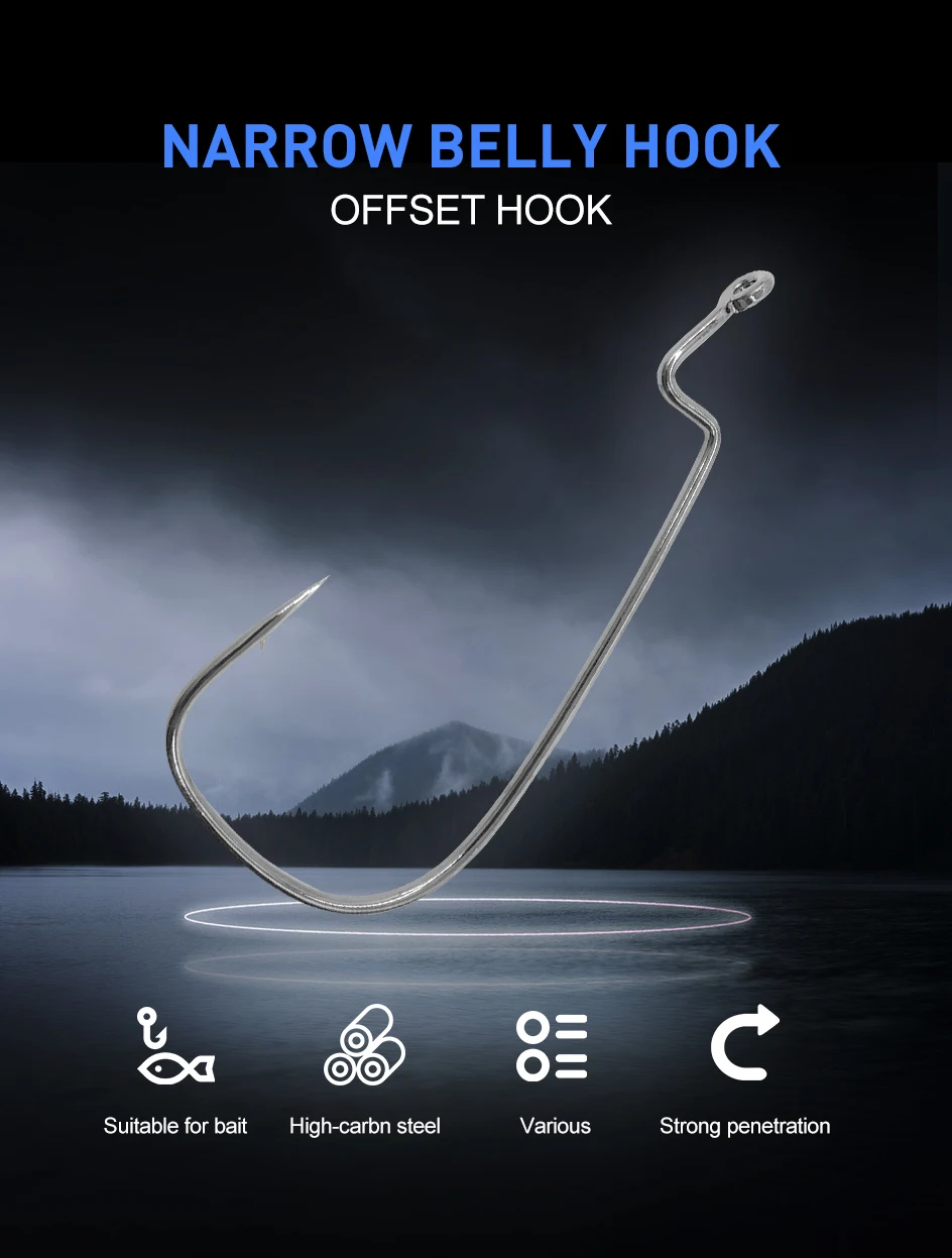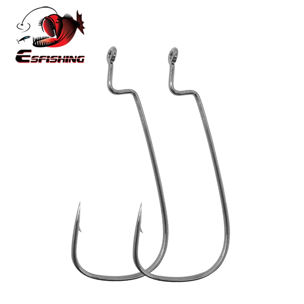 ESFISHING-anzuelo compensado de vientre estrecho, anzuelos de pesca de acero al carbono, manivela, anzuelo de gusano con púas para señuelo de pesca suave
