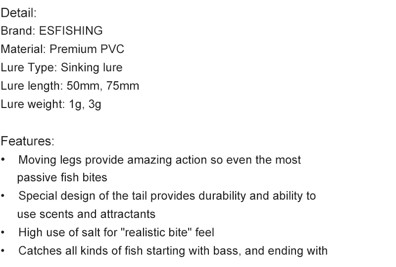 ESFISHING-Cebo de gusano blando Jigging Larva, 50mm, 75mm, para todos los peces Iscas, Pesca de hielo Artificial, aparejos de señuelo