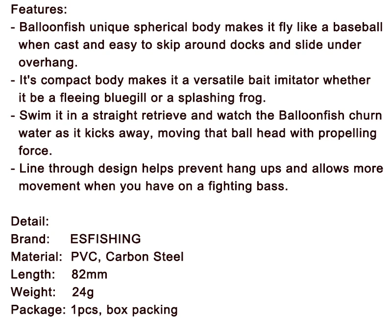 ESFISHING-cebo suave de silicona, pez globo, 82mm, 24g, 1 Uds., Deraball con anzuelo de calidad, aparejos de Pesca artificiales