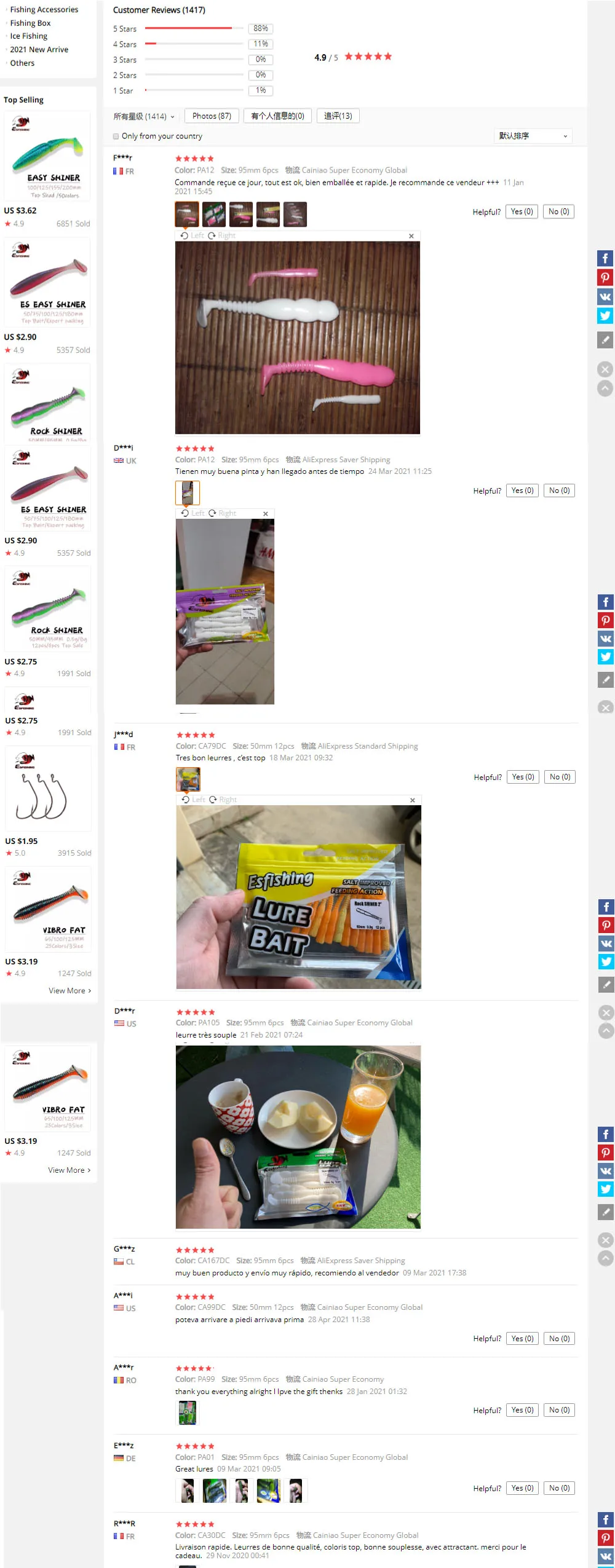 El color es muy diferente en comparación con la foto. De hecho, es translúcido con brillo plateado. Sin embargo, es un señuelo atractivo que debería tener un efecto en todos los depredadores. Envío y entrega rápidos. Estoy acostumbrado a comprar a este vendedor, y la calidad de los productos es impecable. Uno de los mejores vendedores de señuelos blandos en Aliexpress.
