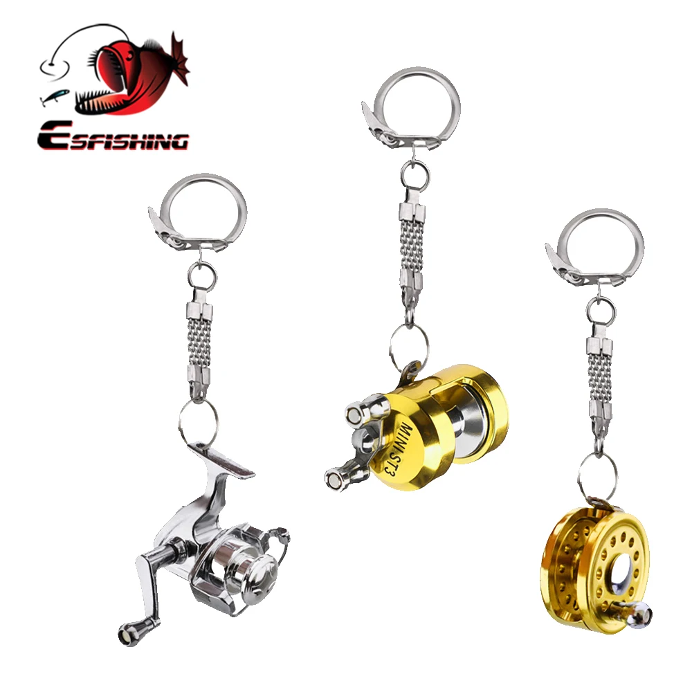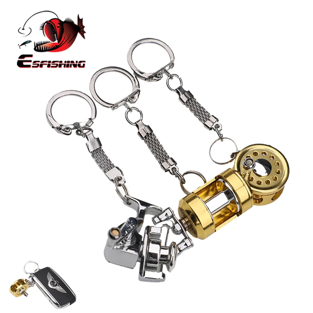 ESFISHING-llavero de carrete de pesca giratorio, accesorio de Metal para coche, novedad de 2022