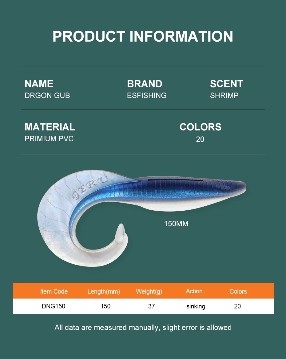 ESFISHING, nuevos cebos blandos grandes, Grub de dragón, 150mm, cola de silicona, Lucio, Pesca, perfumado, Isca, señuelo de Pesca Artificial