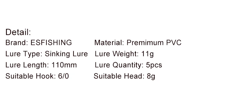 ESFISHING Pesca cebo de silicona Crazy Flapper 110mm11.4g 5 uds Swimbait inyectar sales aparejos de Pesca señuelo de Pesca suave