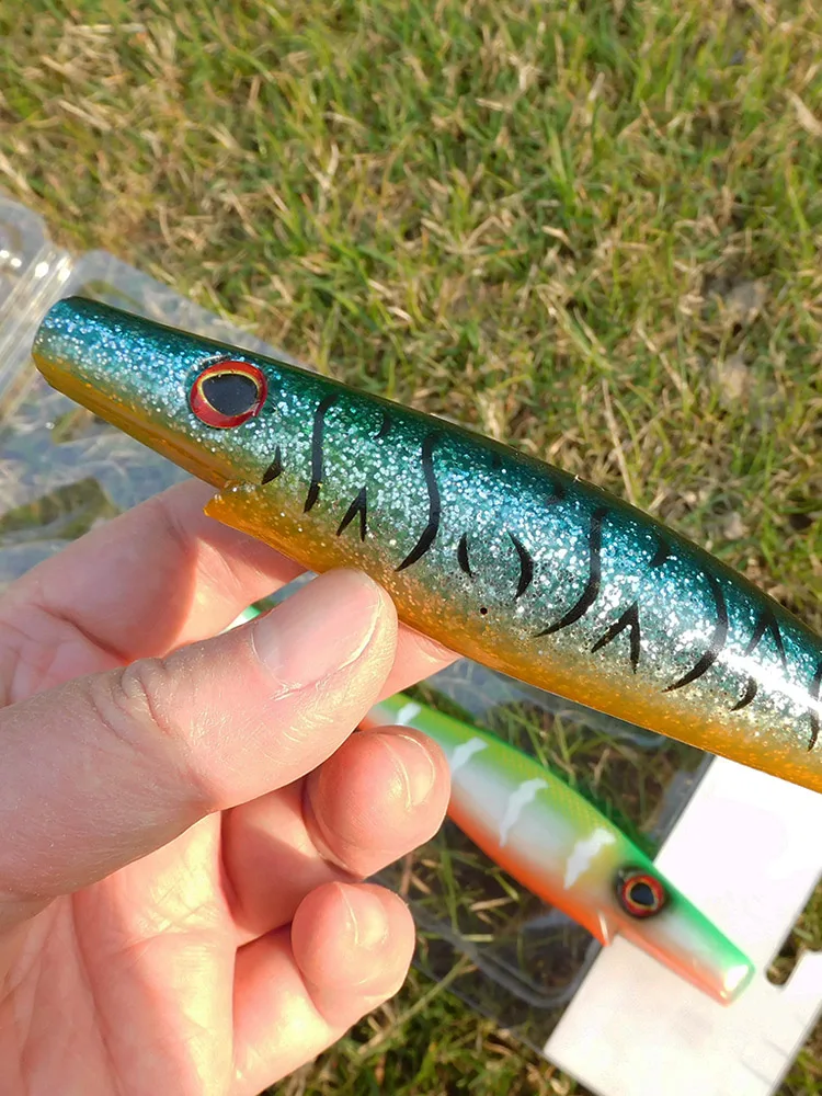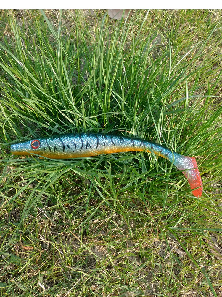 La calidad del señuelo en sí y su rendimiento son bastante buenos. Ya probado en el agua, solo impresiones positivas. Altamente recomendado para quienes están interesados en señuelos grandes de silicona.