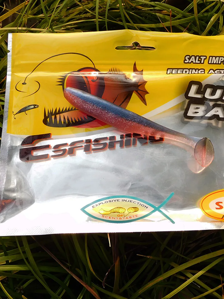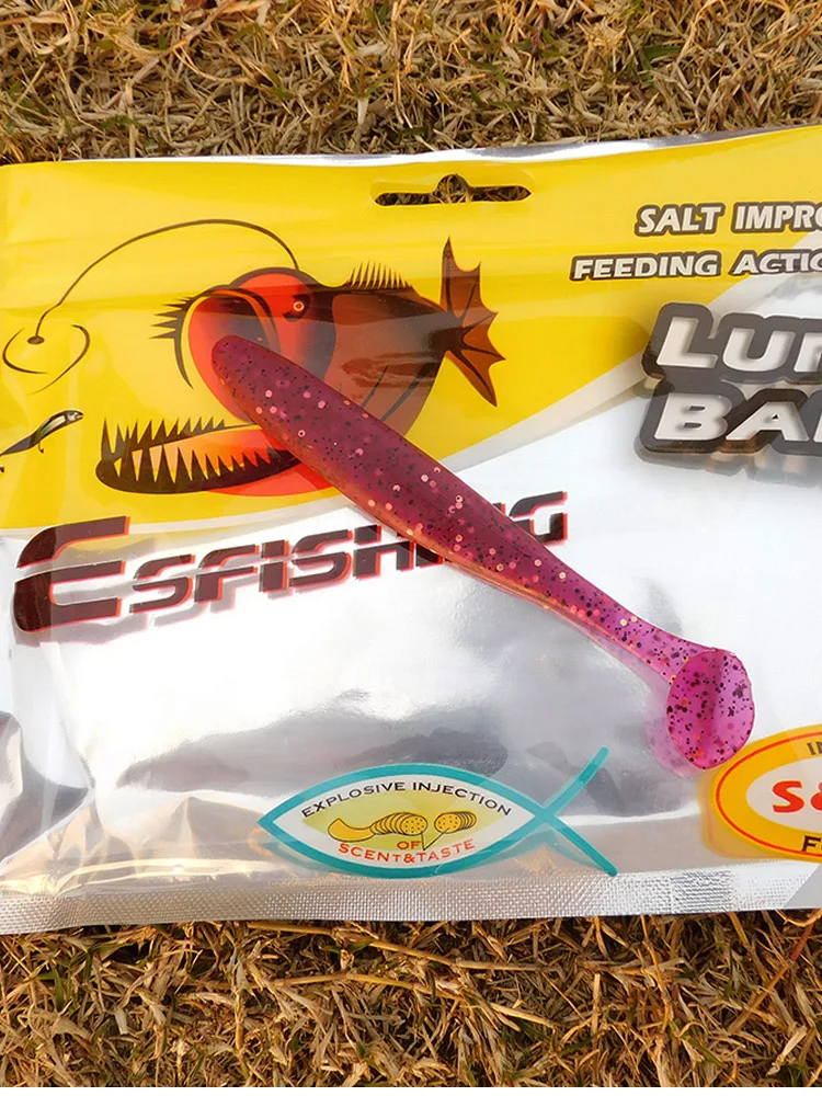 ESFISHING-señuelo suave perfumado, cola en T, 100MM, para pesca de lubina, Lucio, trucha