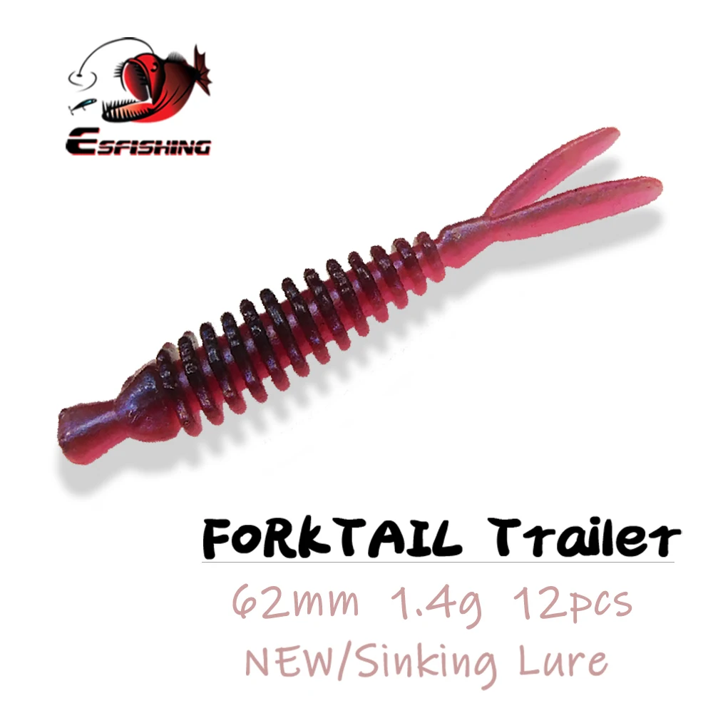 ESFISHING-SEÑUELOS DE gusano para Pesca, cebos blandos de silicona Artificial, cola de carretilla, remolque de 62mm, alta calidad
