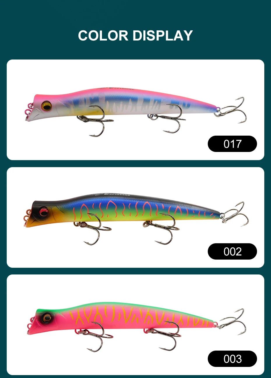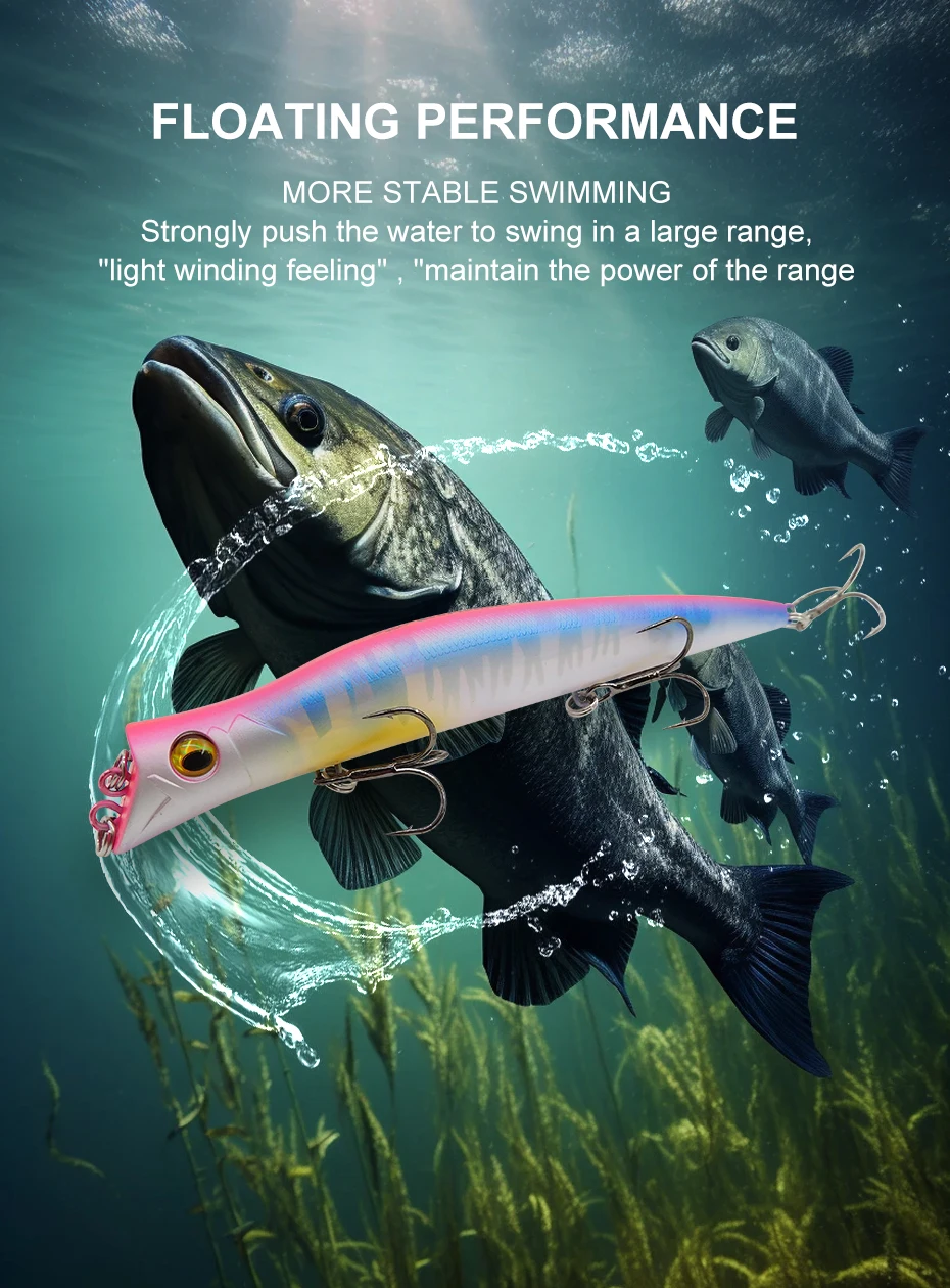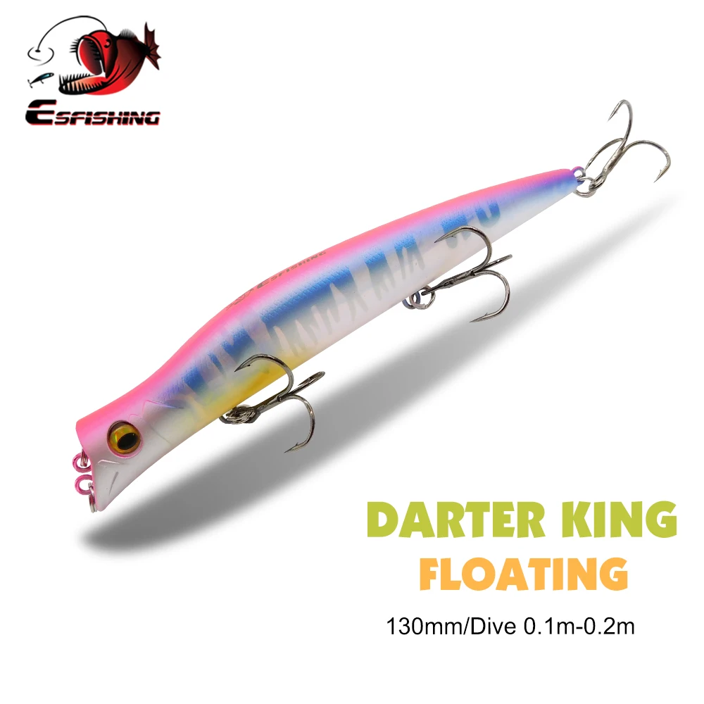 ESFISHING Señuelos de pesca flotantes superficie Popper Darter King 13cm 17,5g dos cebos duros profesionales de buceo agua superior