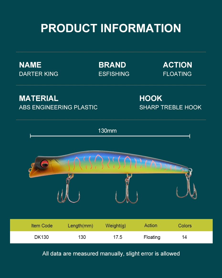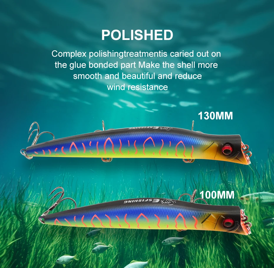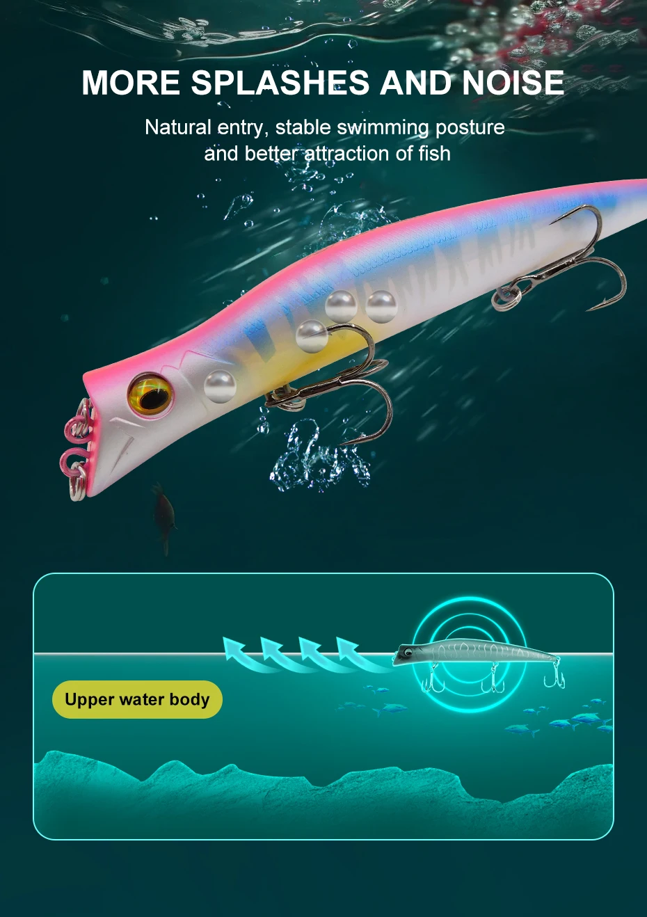 ESFISHING Señuelos de pesca flotantes superficie Popper Darter King 13cm 17,5g dos cebos duros profesionales de buceo agua superior