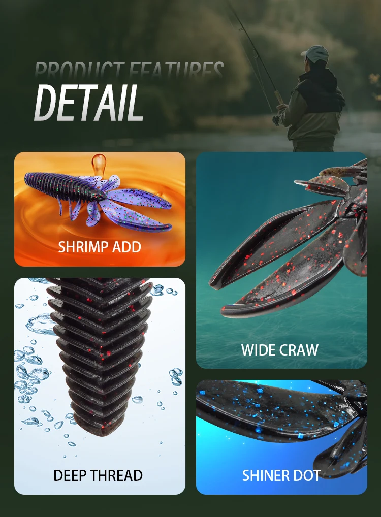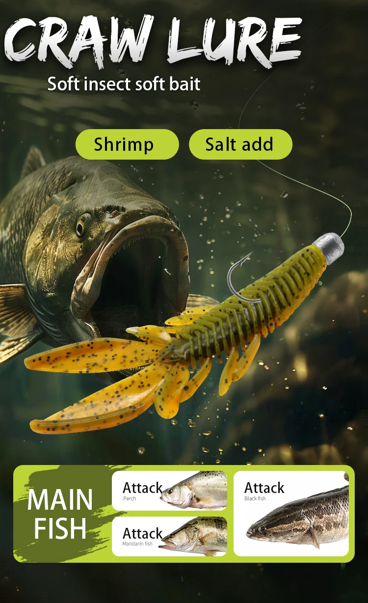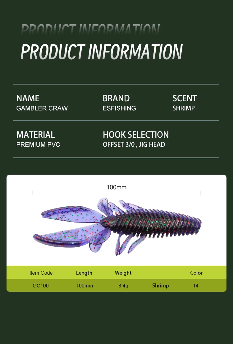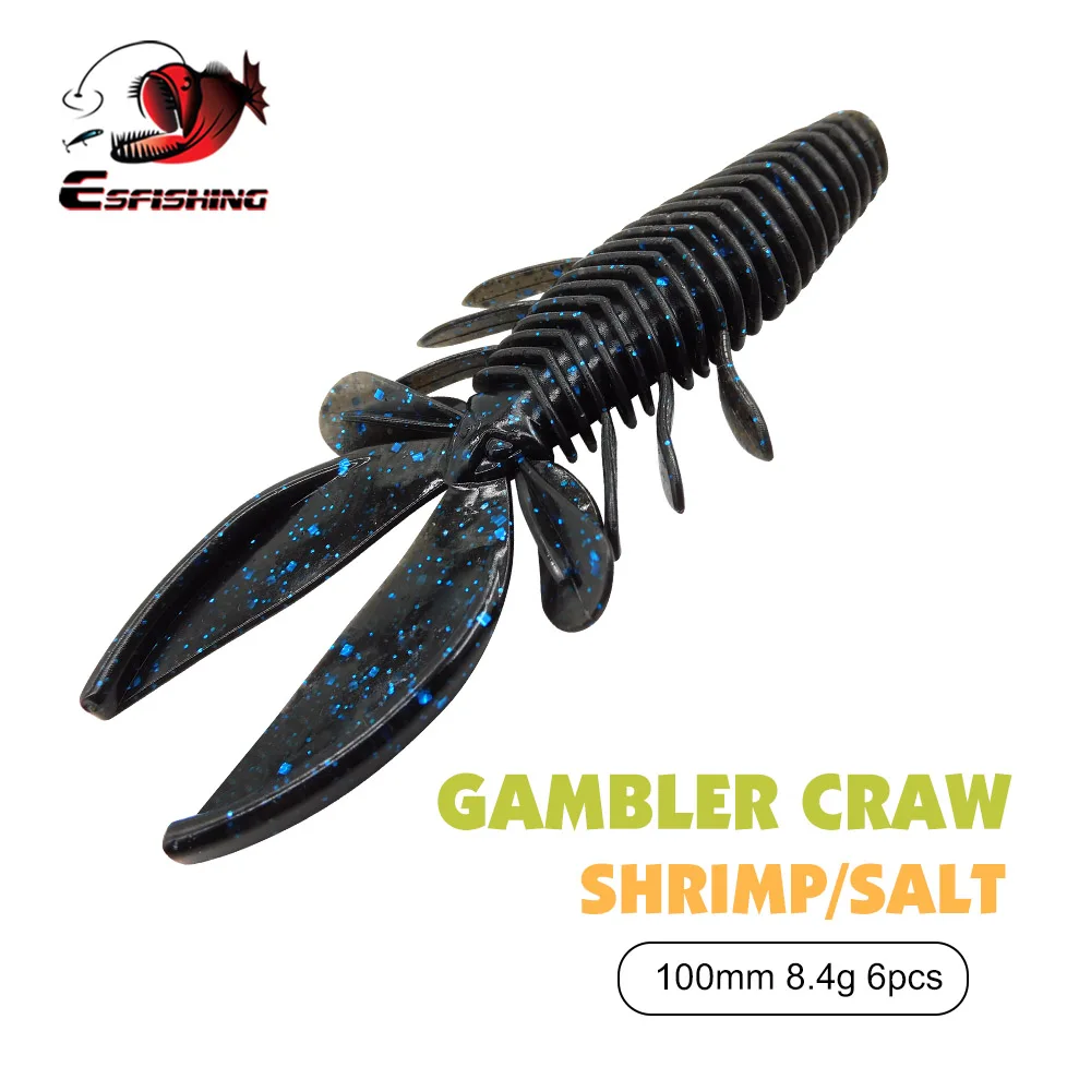 ESFISHING Señuelos de pesca jugador Craw 6 uds 100mm cebo suave pesca de carpa Swimbait alimentador señuelos de Jigging