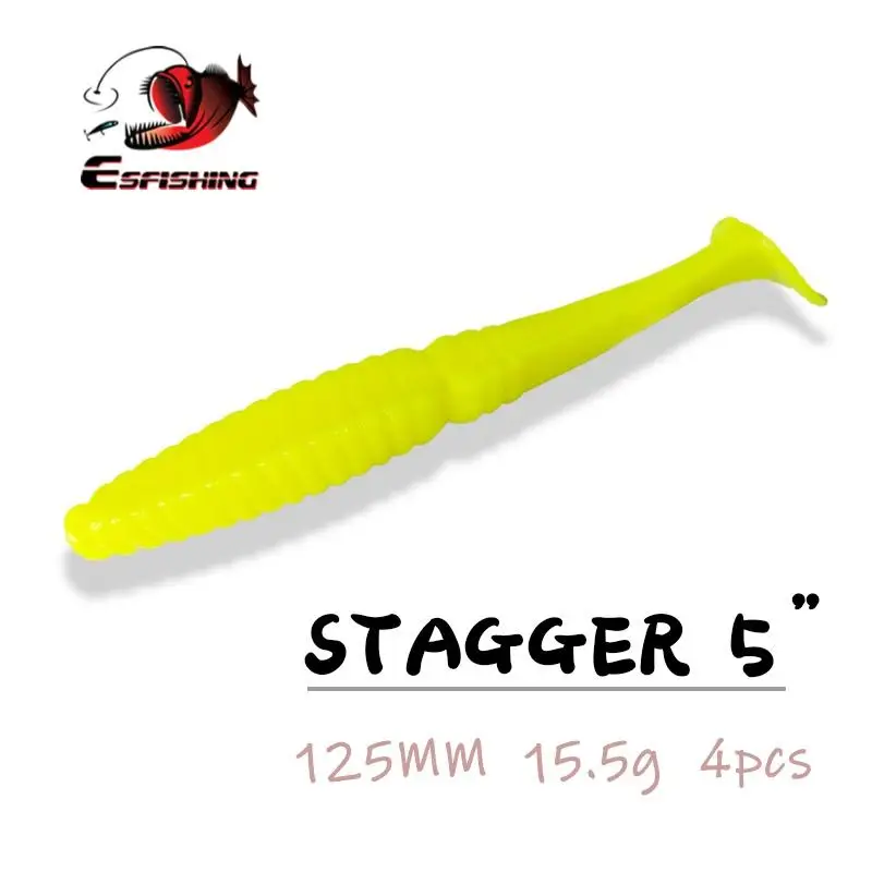 ESFISHING Stagger Shad 125mm4 Uds cebo Artificial de silicona suave Leurre Souple Wobblers Isca señuelo de pesca Artificial